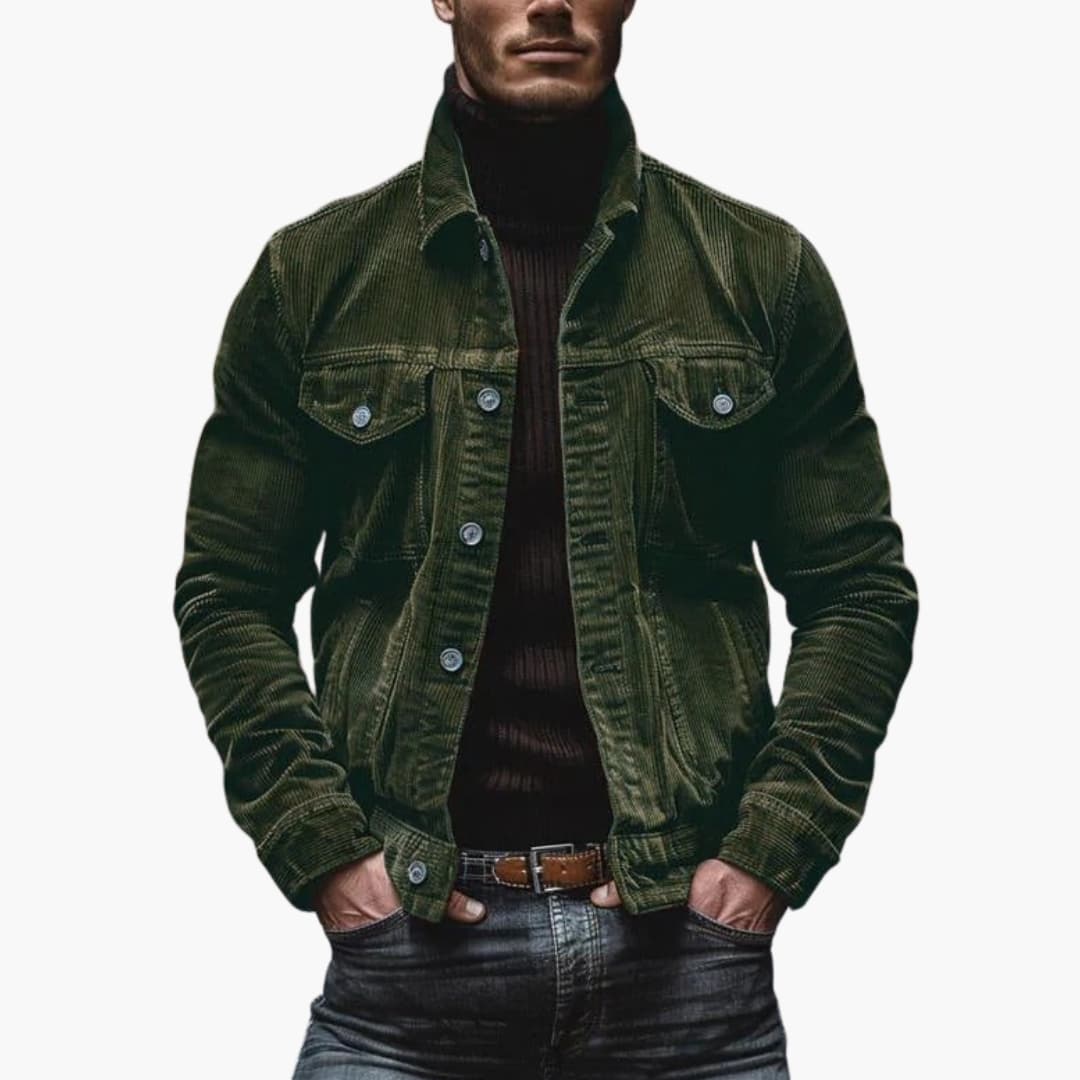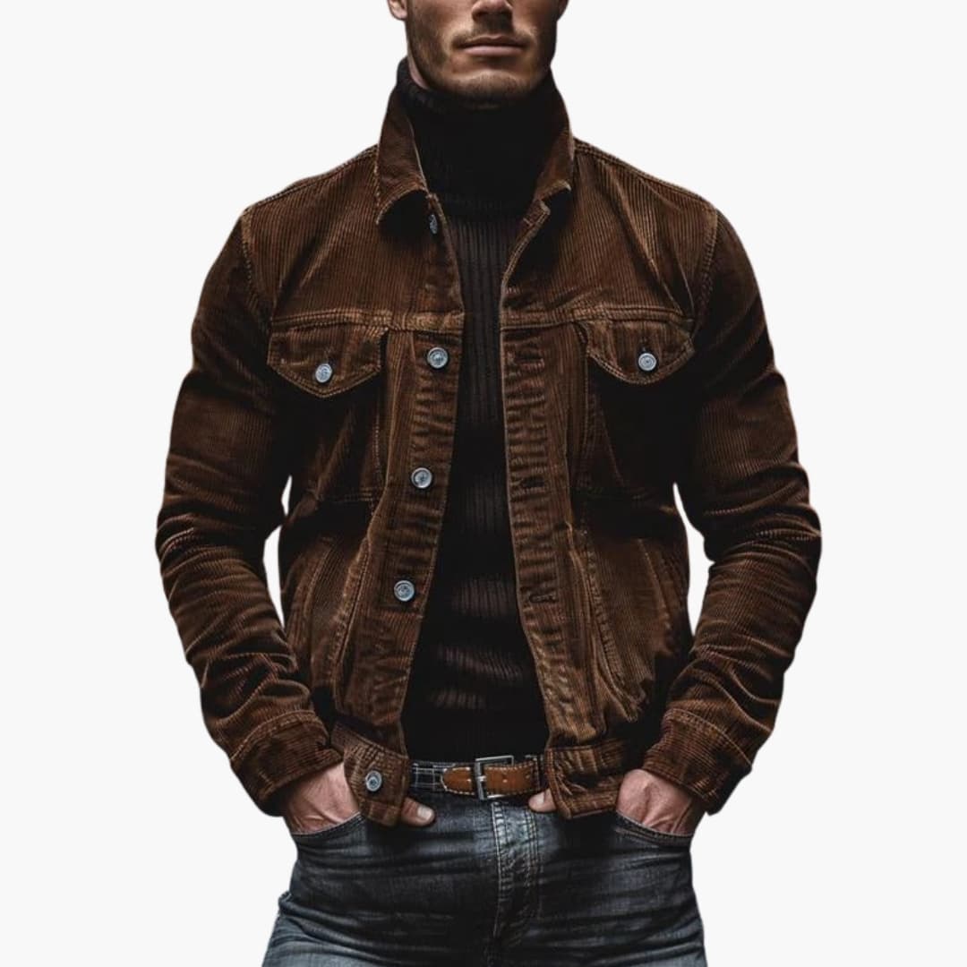Herrejakke i ribbet velour med knaplukning