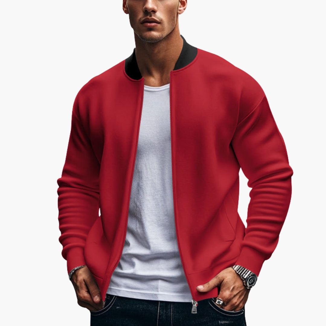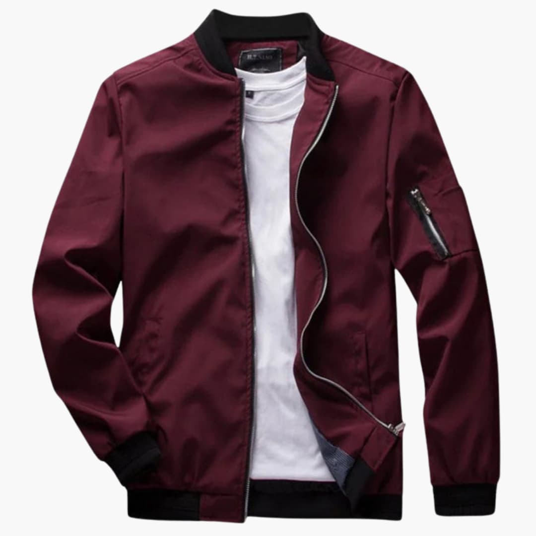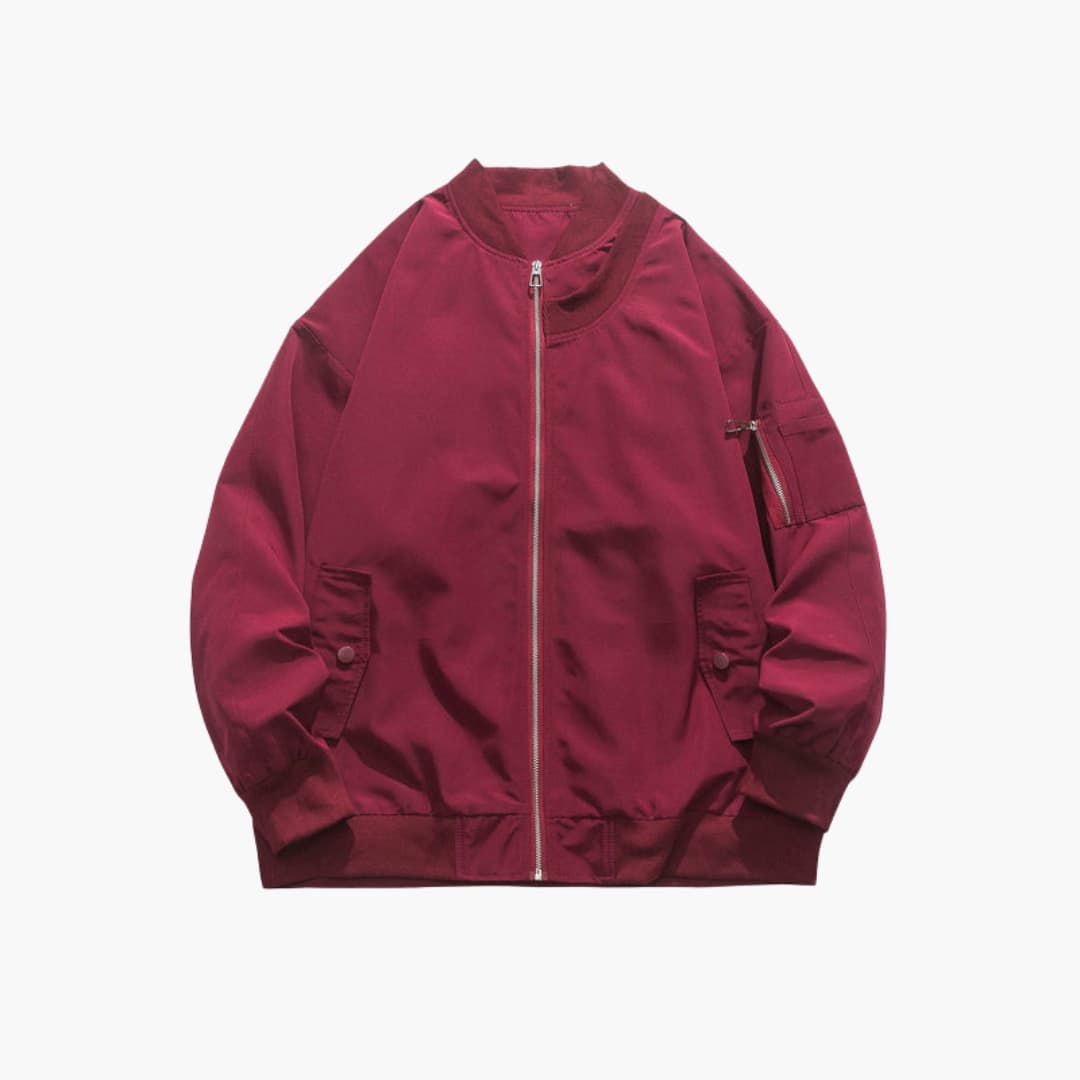 Herre bomberjakke med lynlås og ensfarvet overflade
