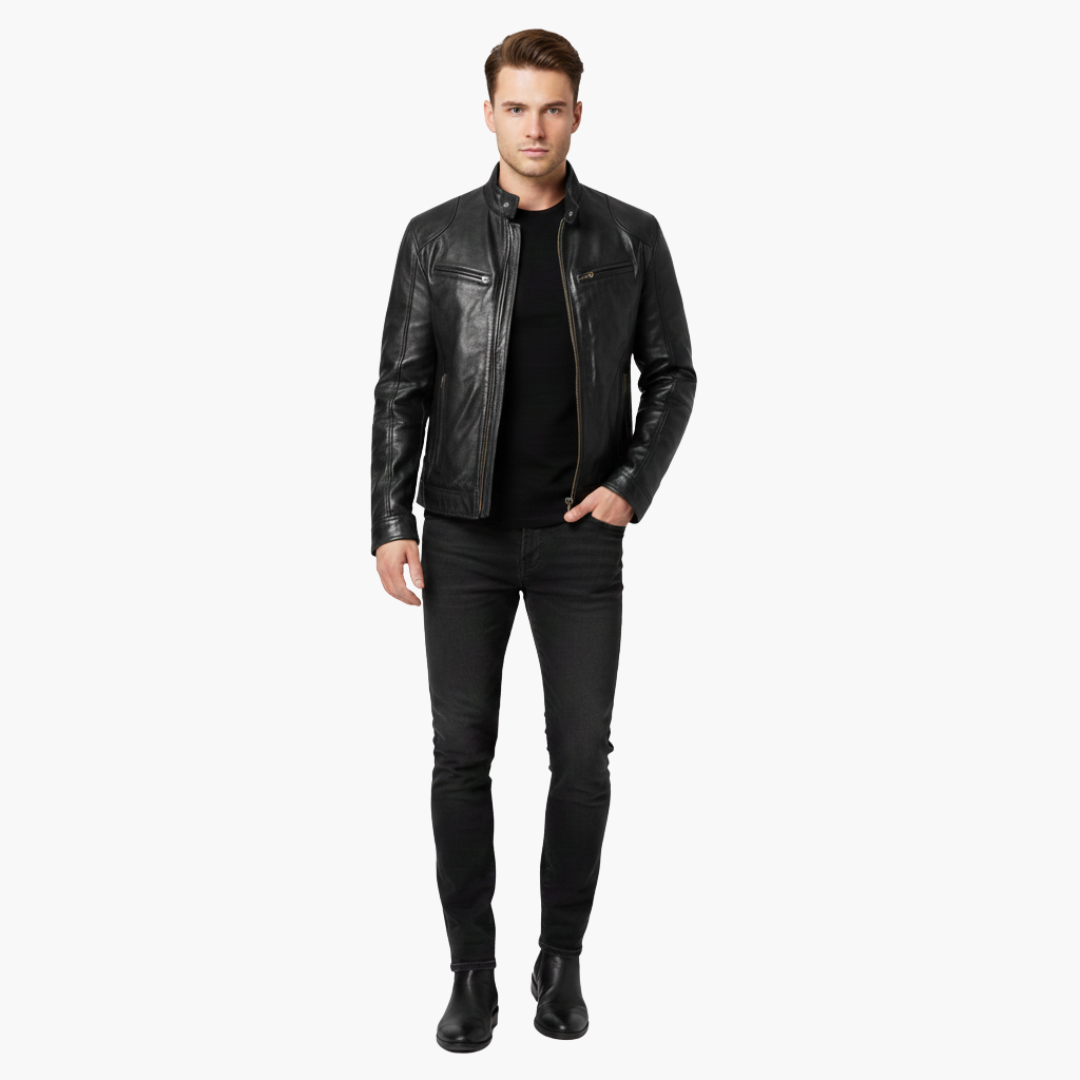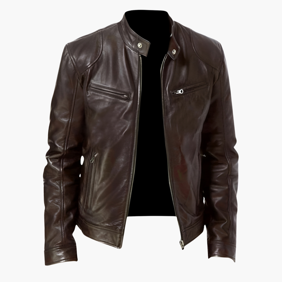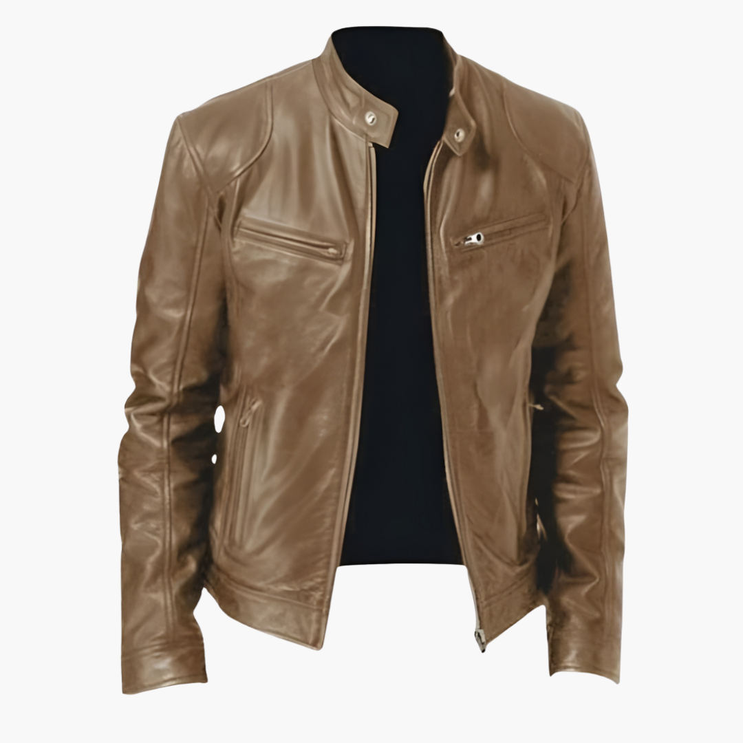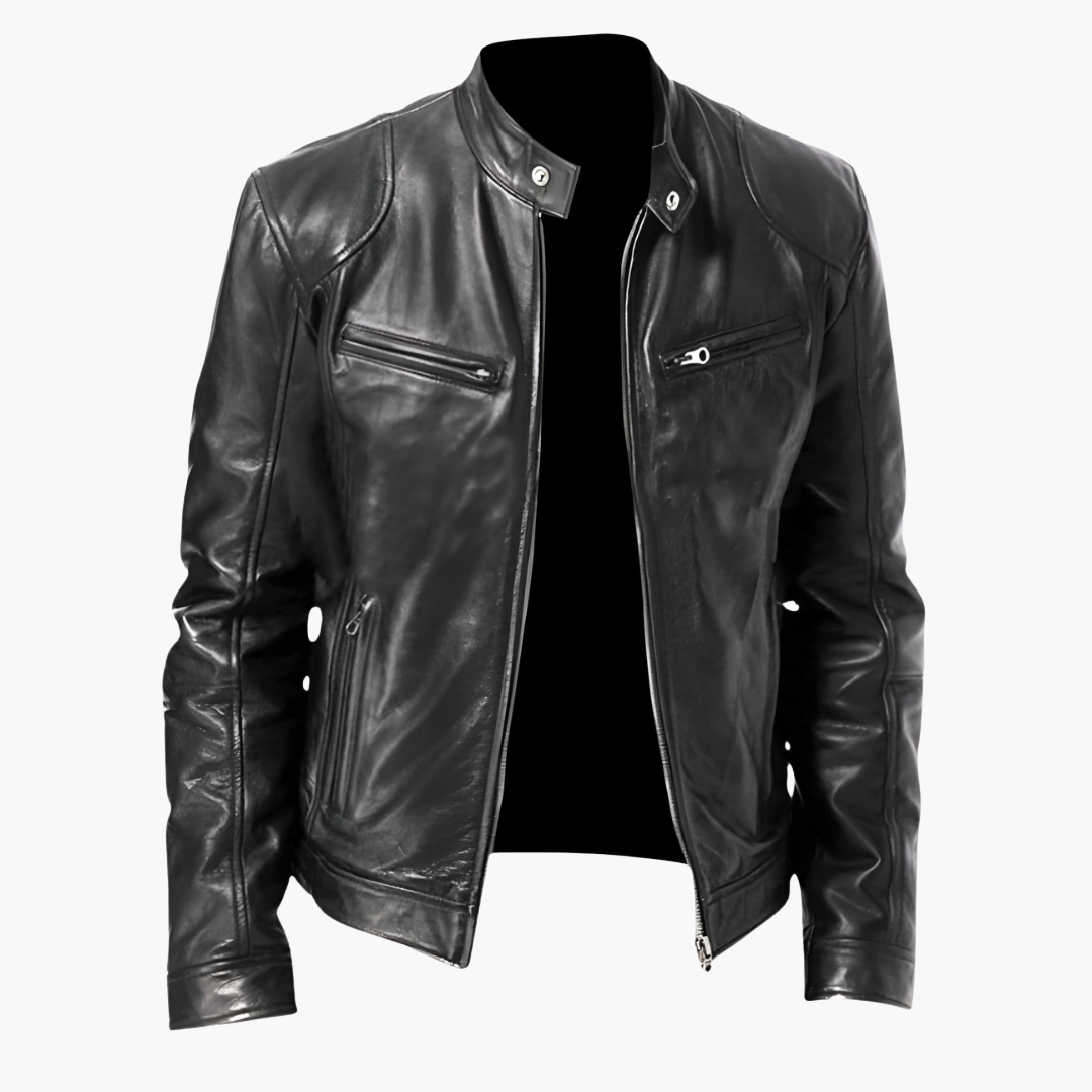Herrejakke i PU med lynlåslommer