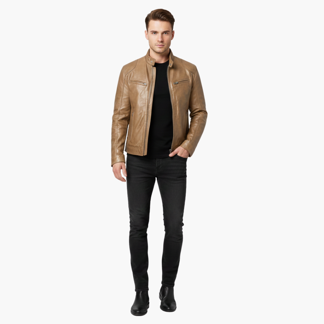 Herrejakke med lynlås og høj krave