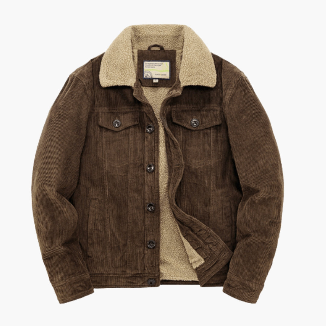 Herrejakke i ribbet velour med sherpa-foring