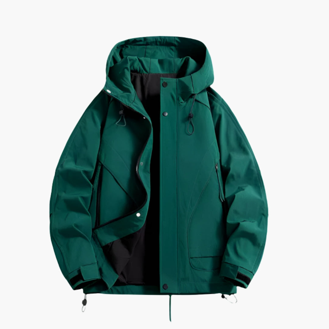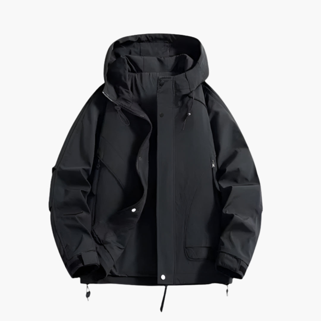 Herrejakke til udendørs brug med justerbar hætte