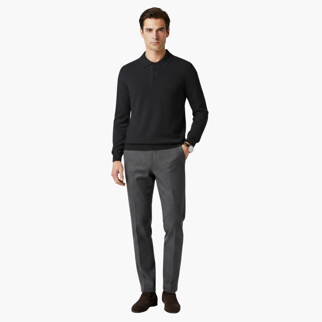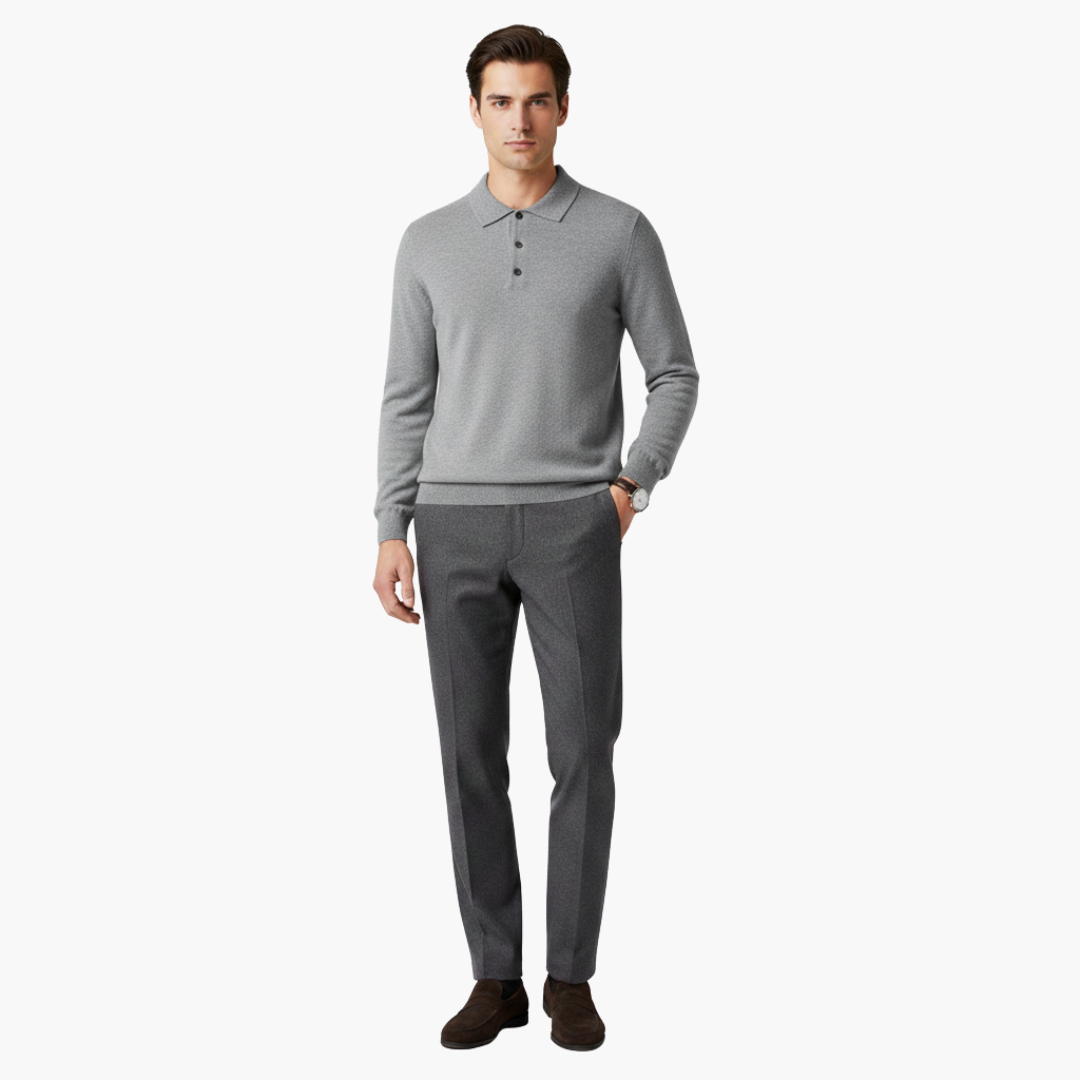 Polo Sweatshirt Herre Langærmet med Knappestolpe
