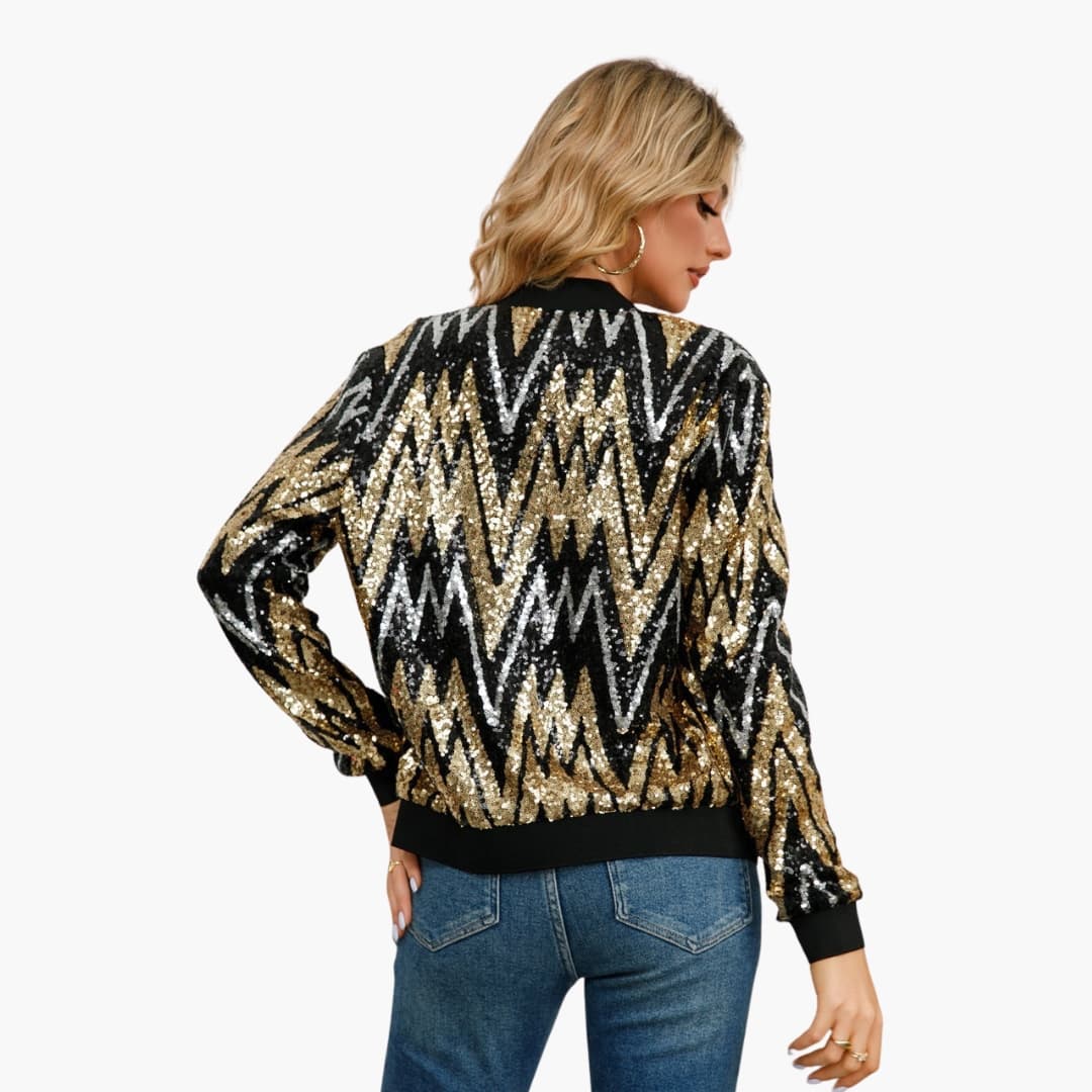 Blouson Bomber Dame med Pailletter og Ribbet Kant