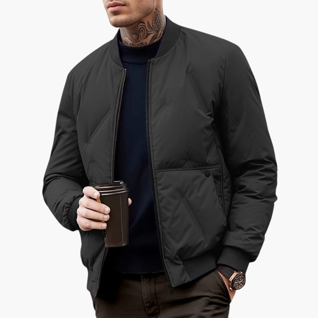 Blouson bomber herre quiltet med ribstrikkede manchetter