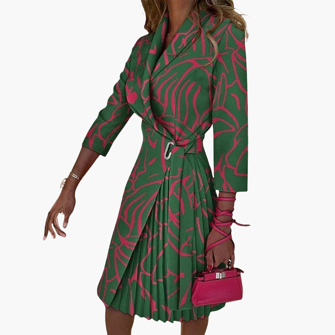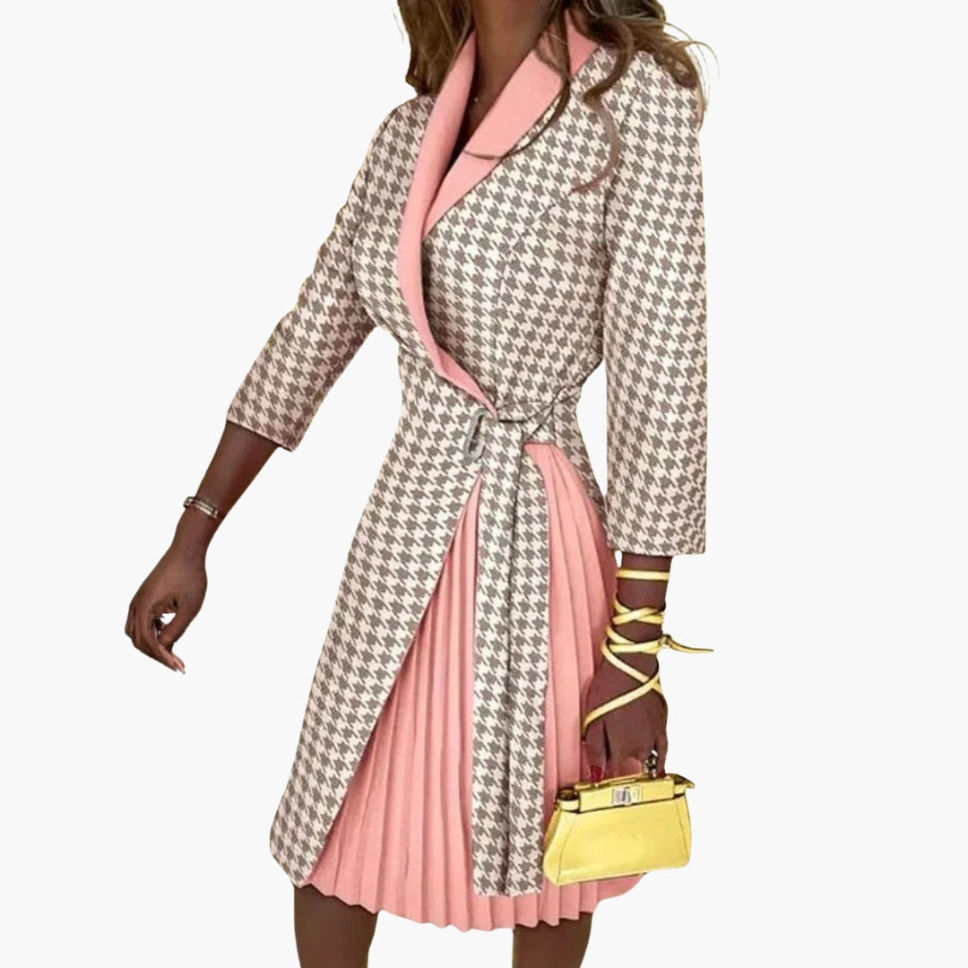 Dame blazer kjole med klippet krave og plisseret nederdel