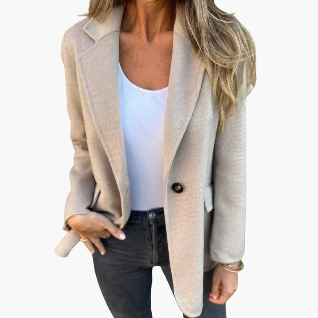 Dame blazerjakke med reverskrave og lukning med en knap