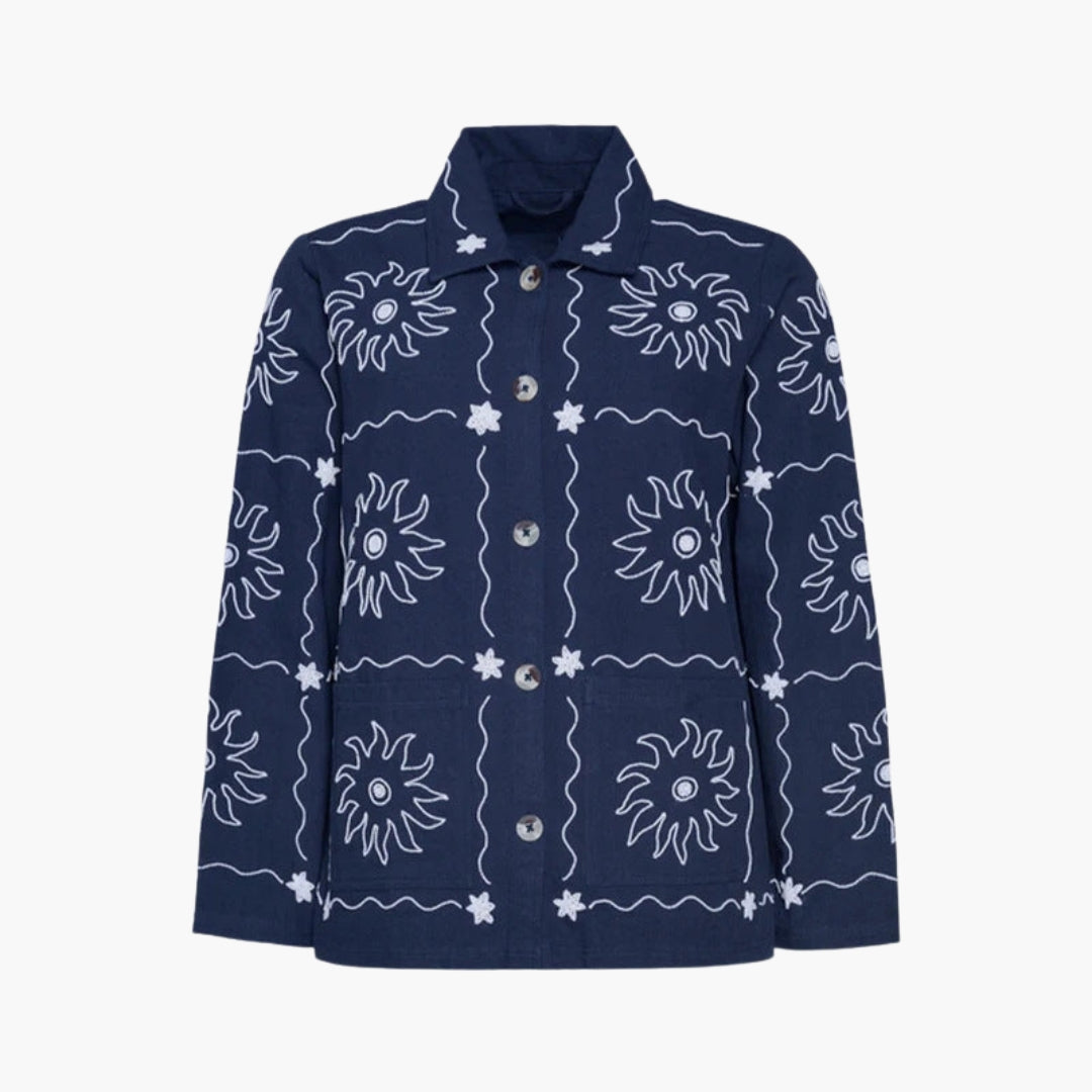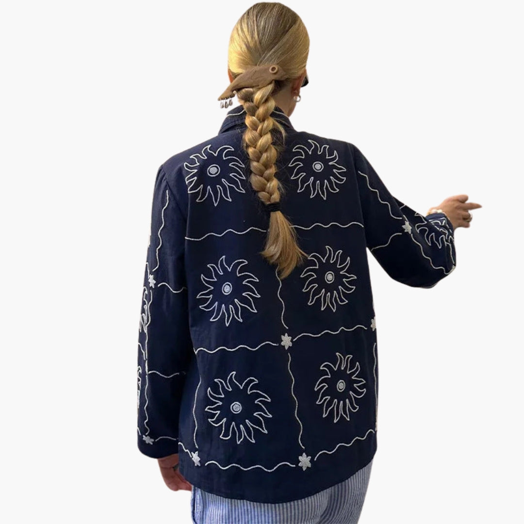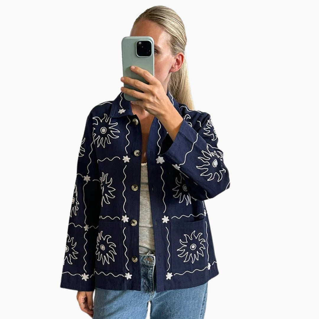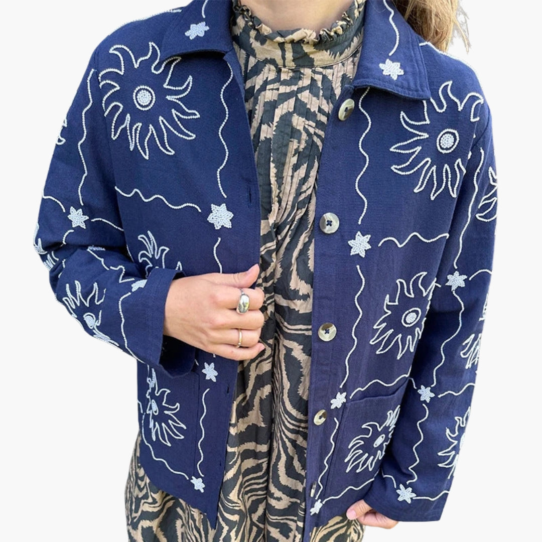 Dame Bombardierjakke med Knapper og Trykte Mønstre