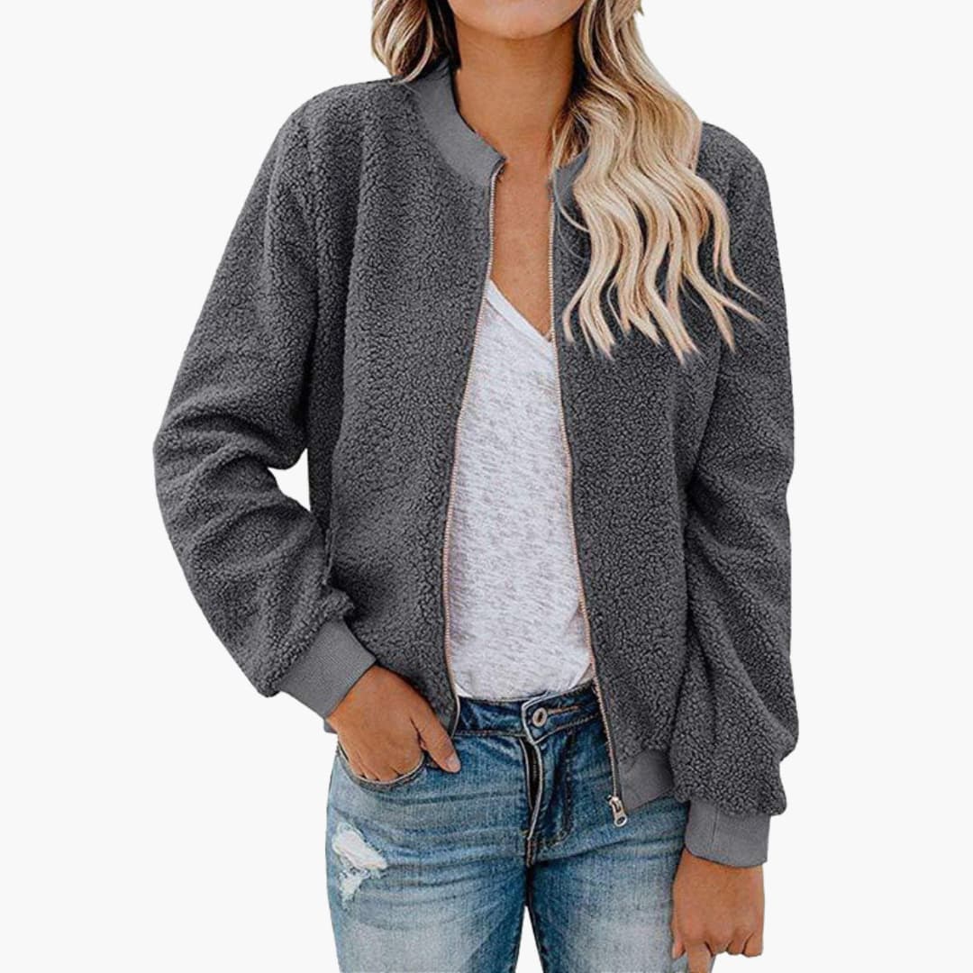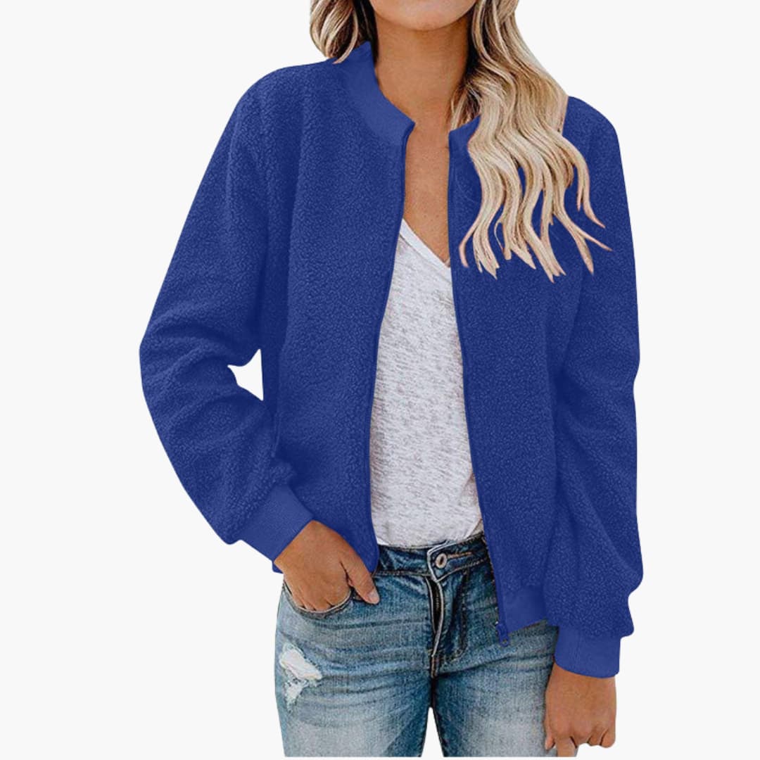 Dame bomberjakke med høj krave og lige pasform