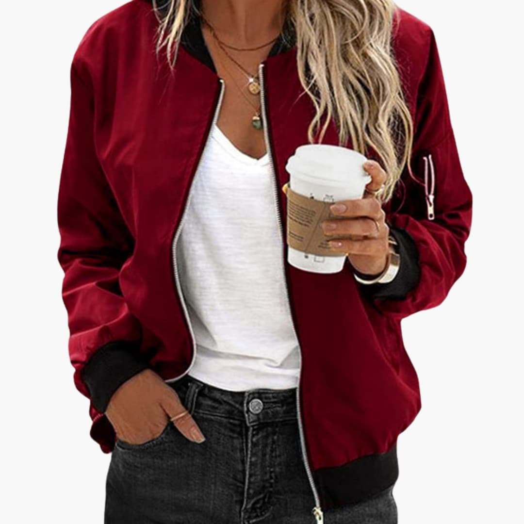 Dame bomberjakke med lynlås og ribbede kanter