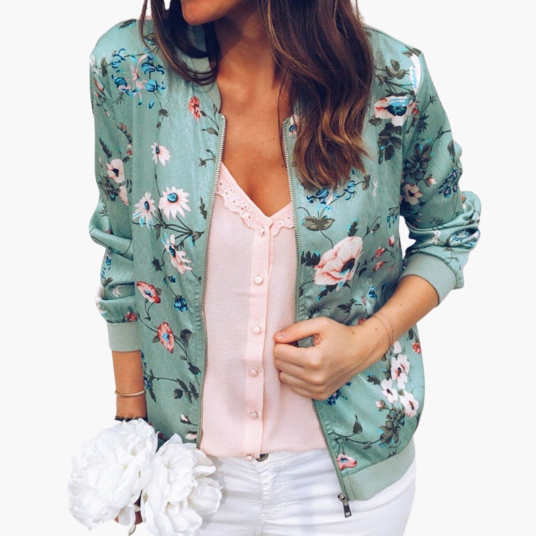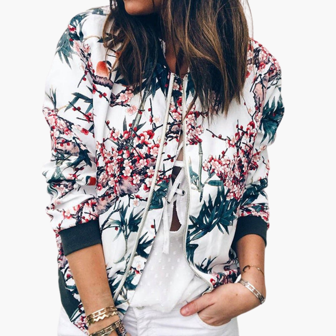 Dame bomberjakke med lynlås og ribkant