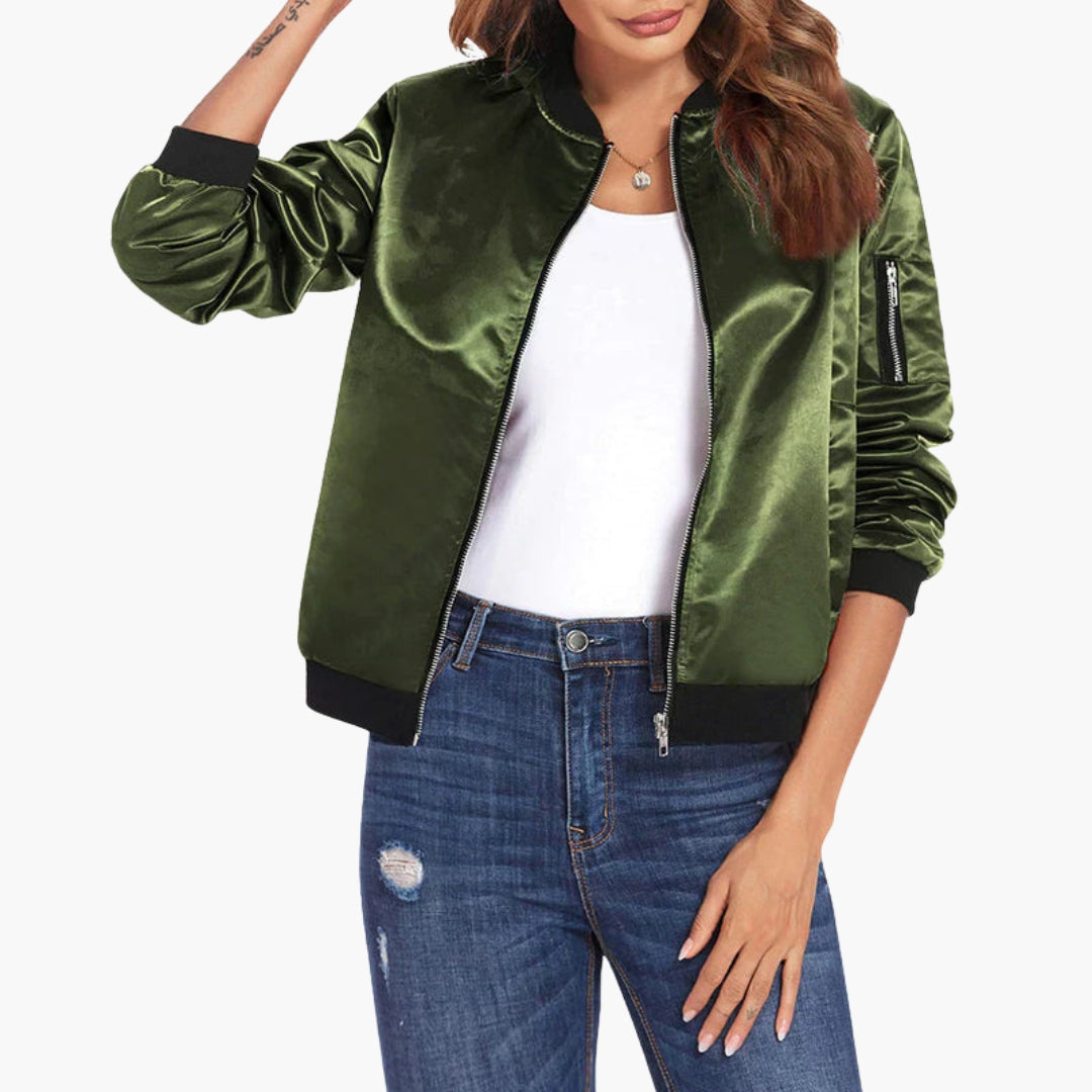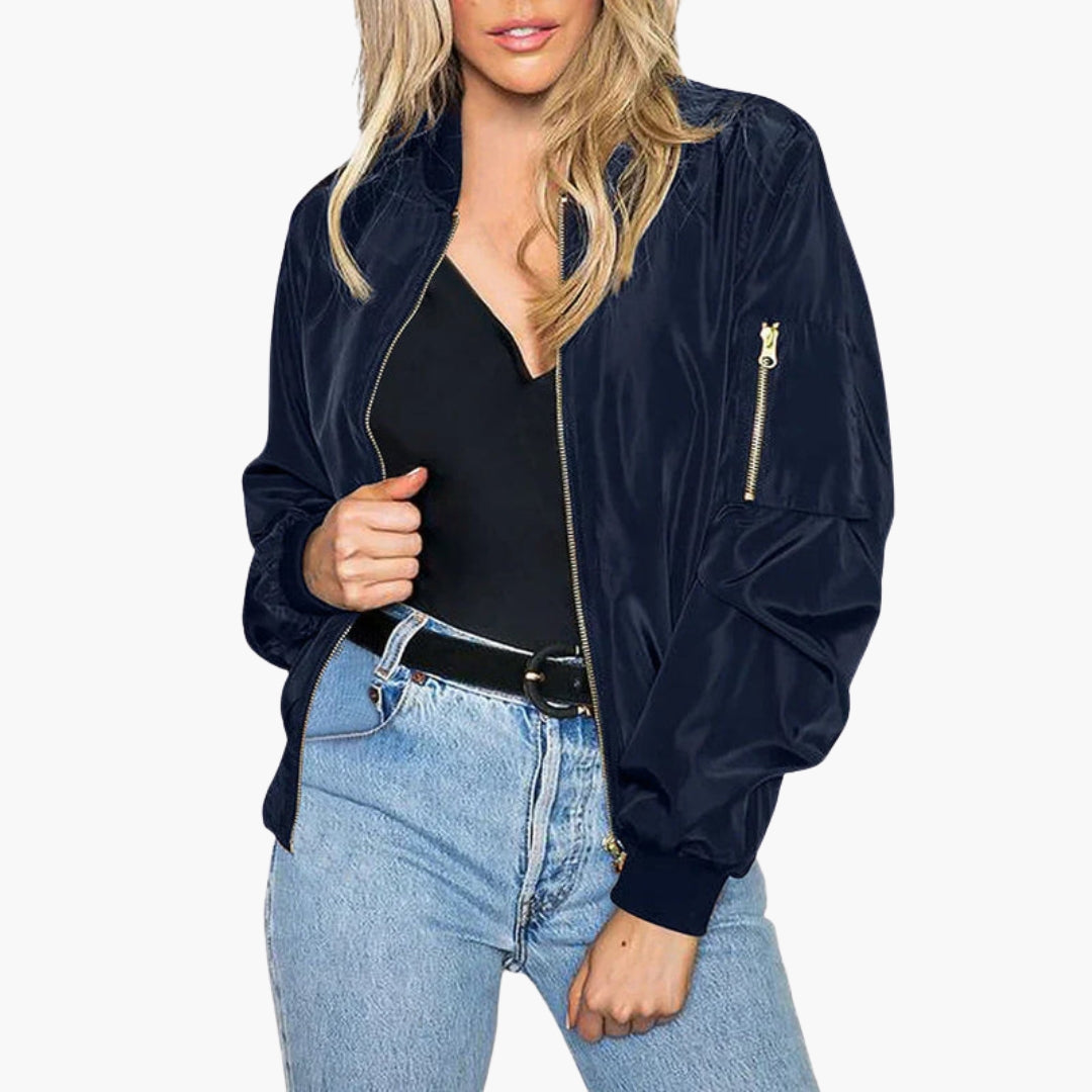 Dame bomberjakke med ribkant