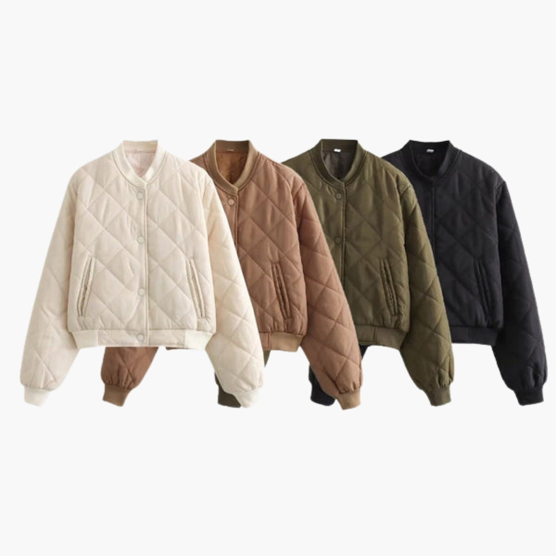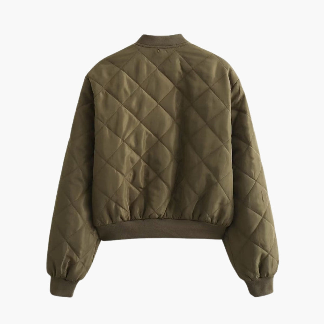 Dame Bomberjakke Quiltet med Paspuljerede Lommer
