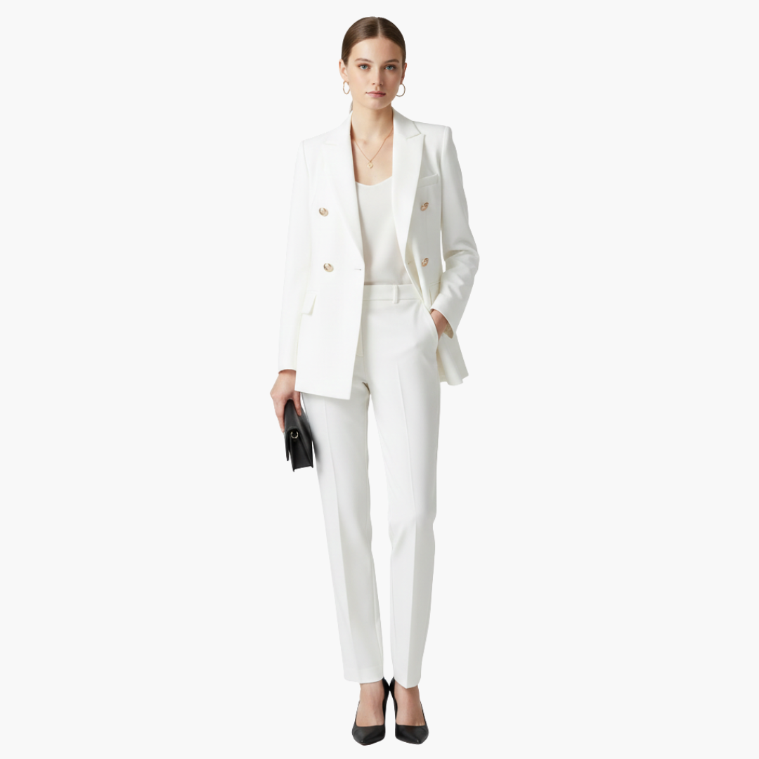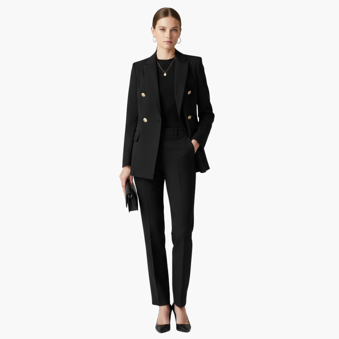 Dame jakkesæt med blazer og lige bukser