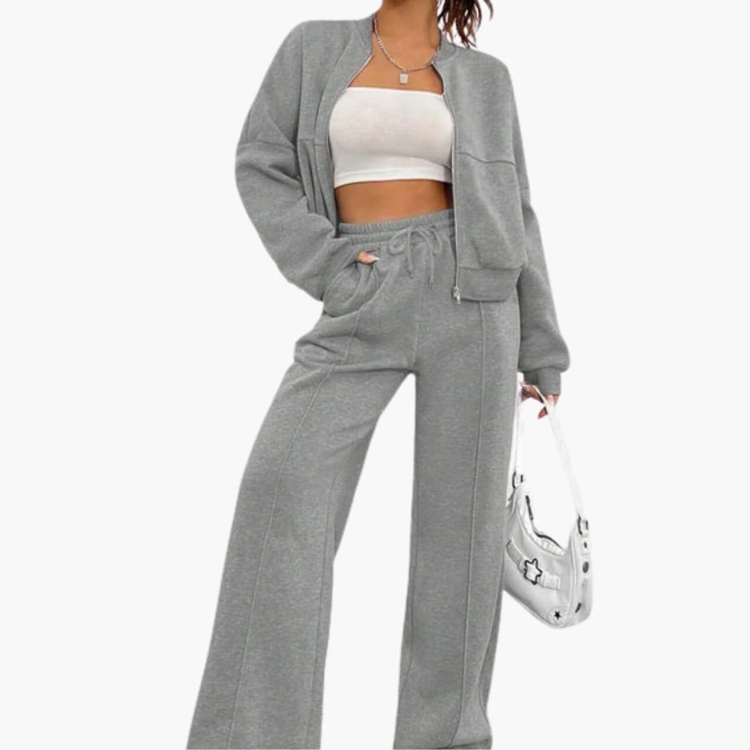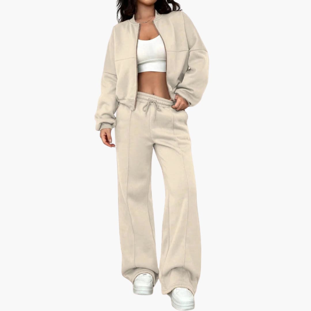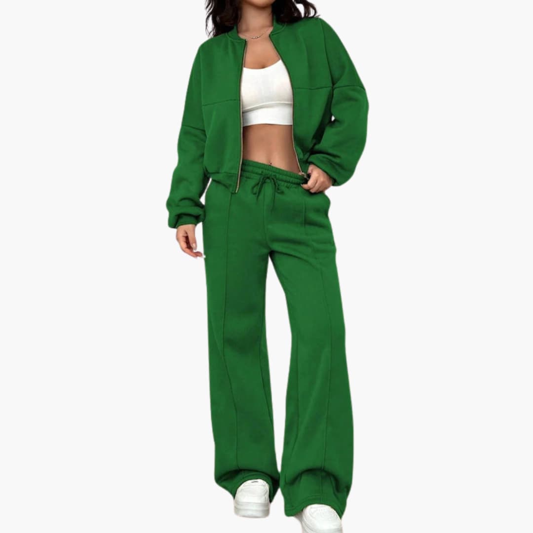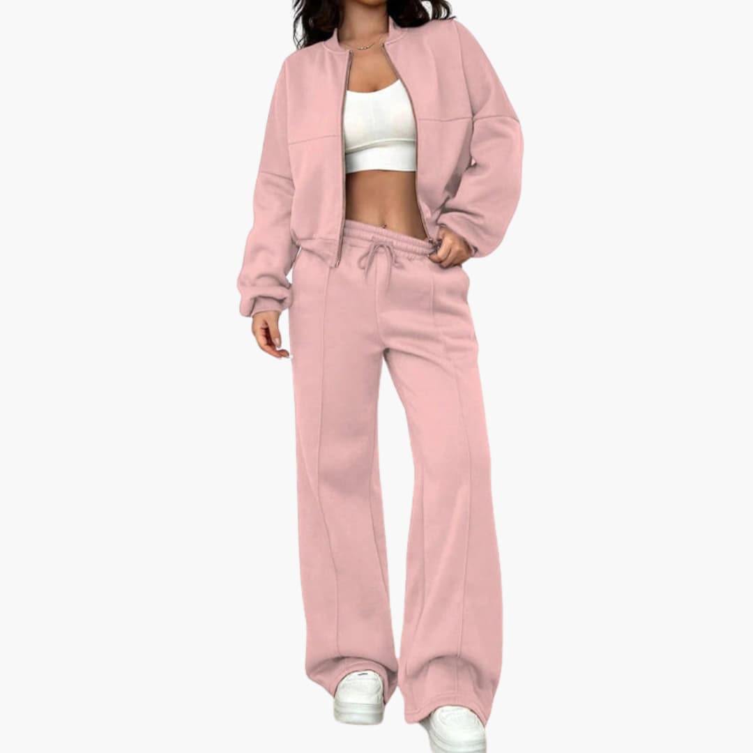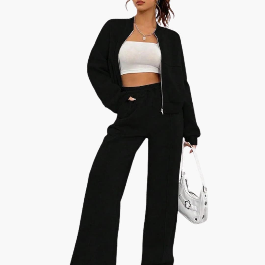 Dame sæt bomberjakke og bukser med lynlås