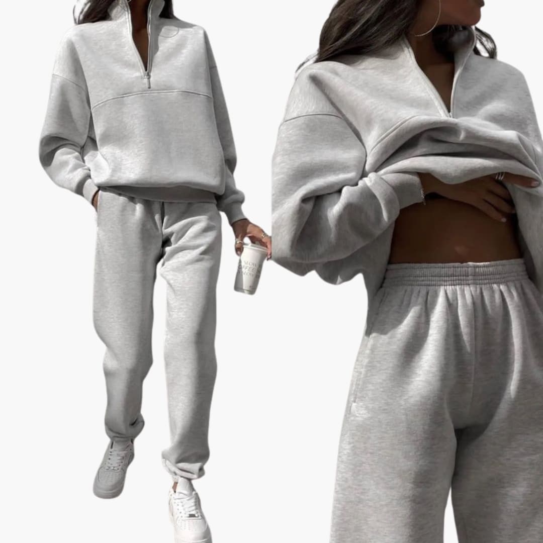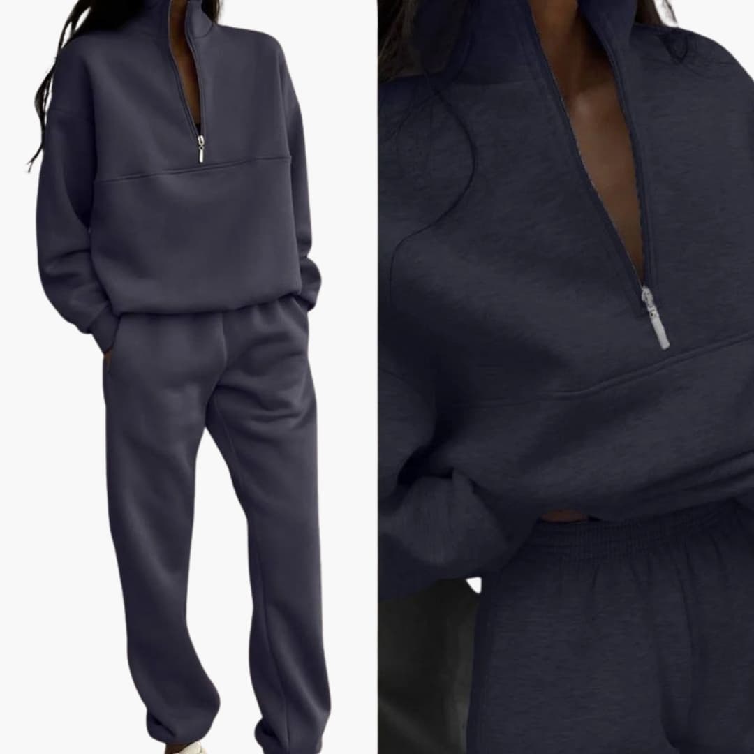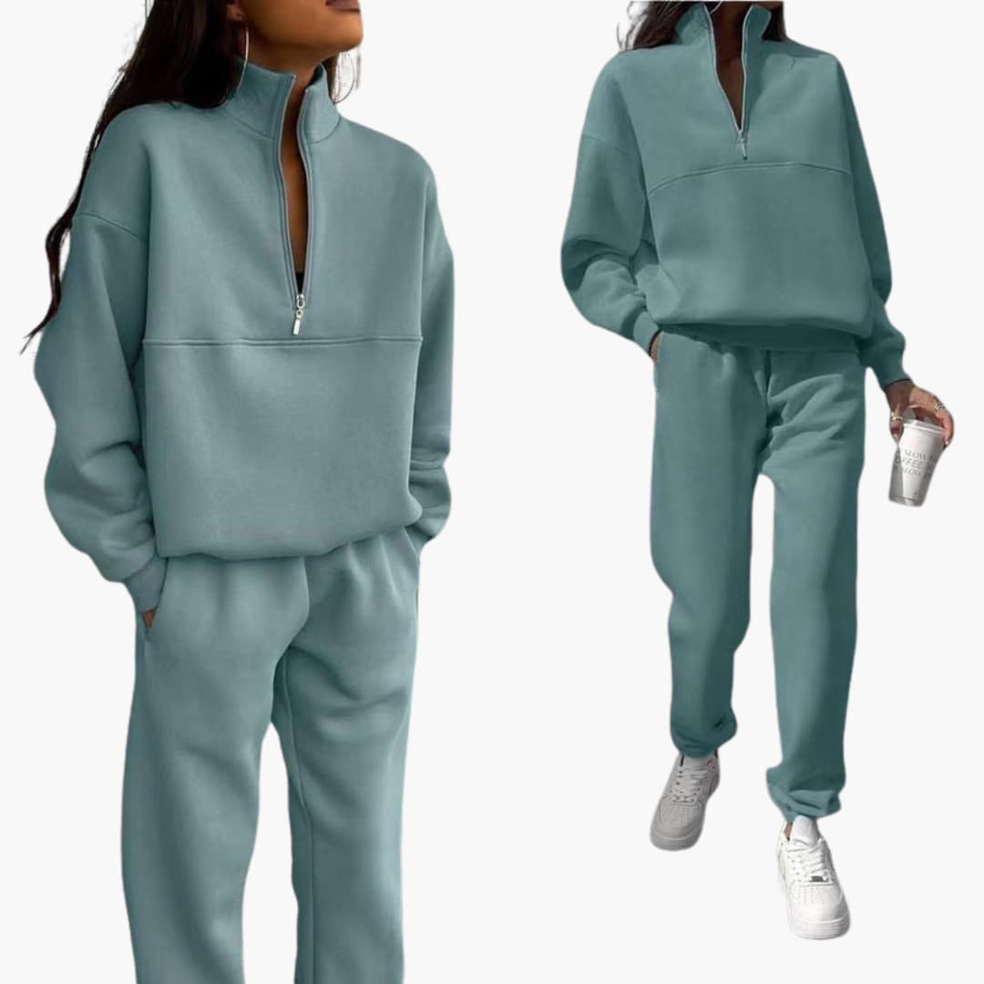 Dame sæt med højhalset zip-top og bukser