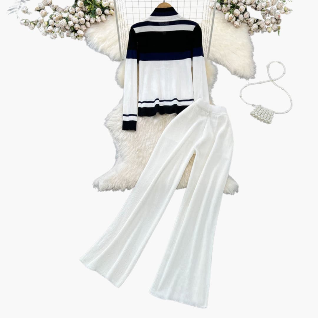 Dame sæt med lynlås cardigan og bredbensbukser med mønster
