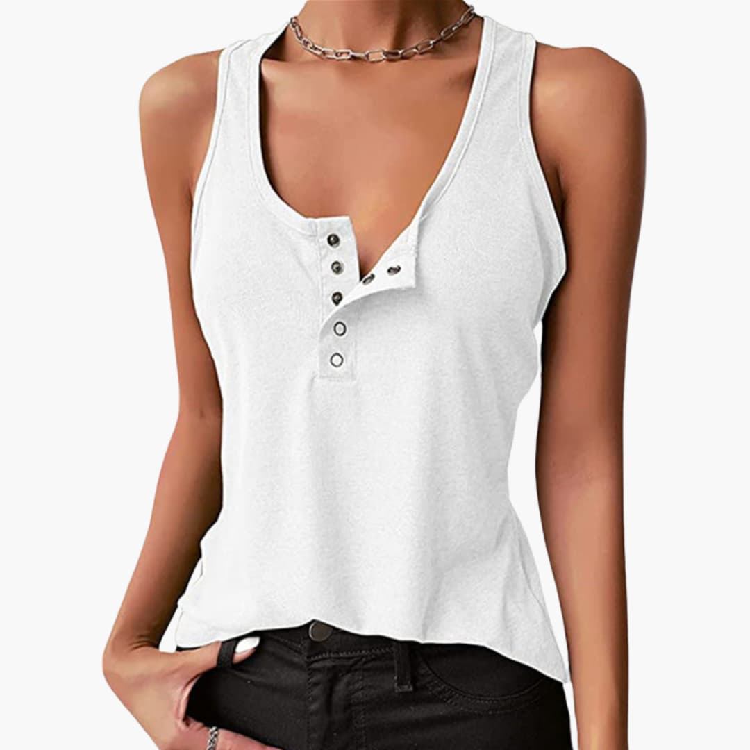 Dame sportstanktop uden ærmer med knaplukning foran