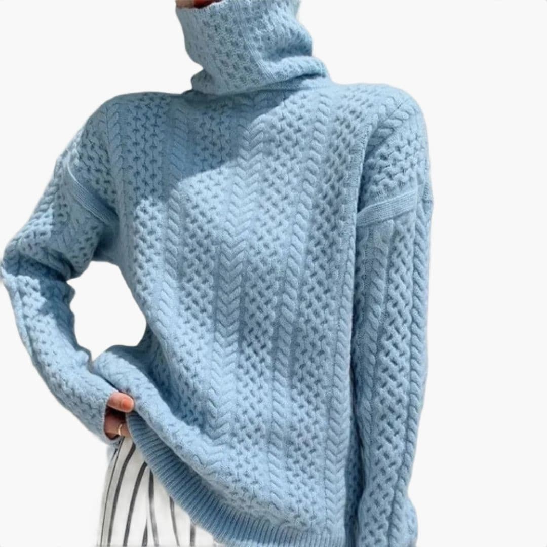Dame striktrøje med høj hals og snoet mønster