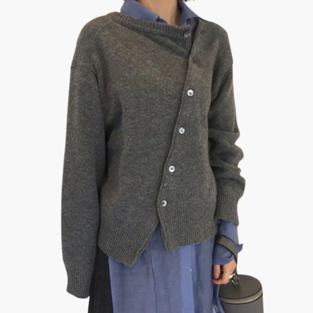 Dame sweater med asymmetrisk knaplukning
