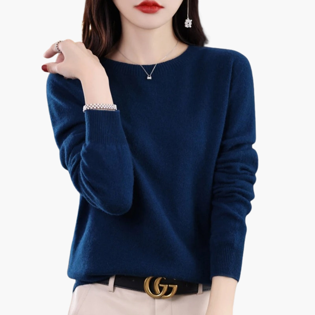 Dame Sweater med Rund Hals og Lange Ærmer