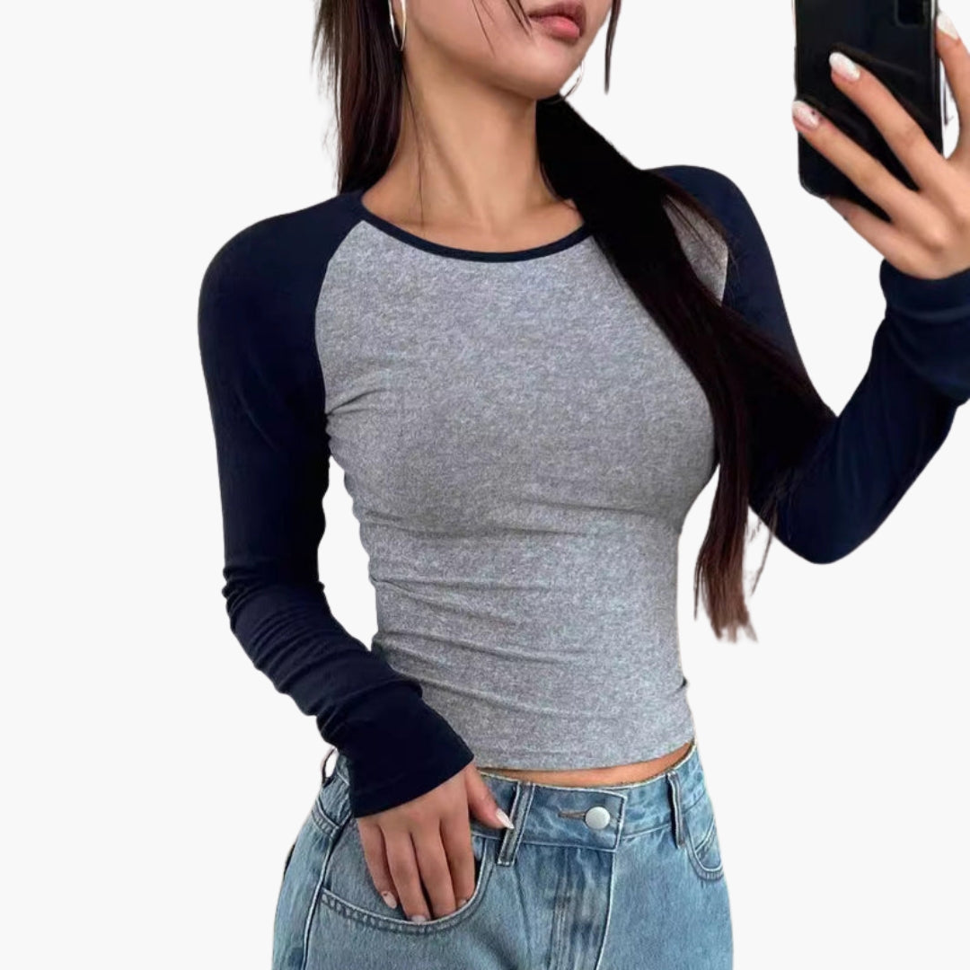 Dame T-shirt raglan lange ærmer tætsiddende pasform