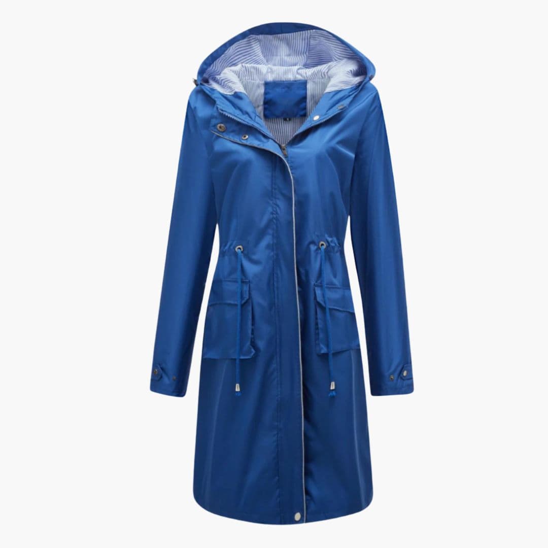 Dame trenchcoat med hætte og klaplommer foran
