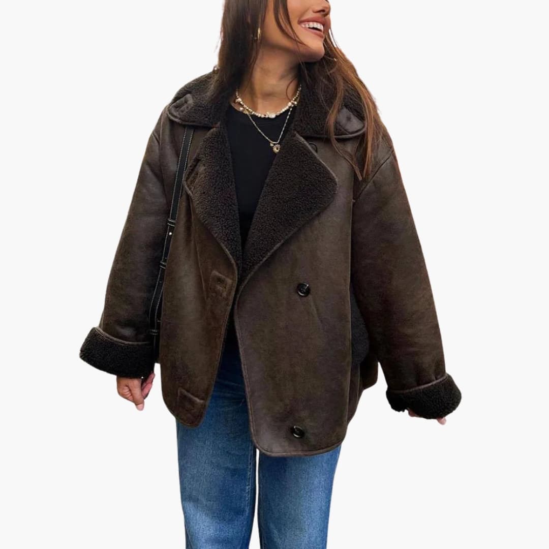 Damejakke med bred revers og knaplukning
