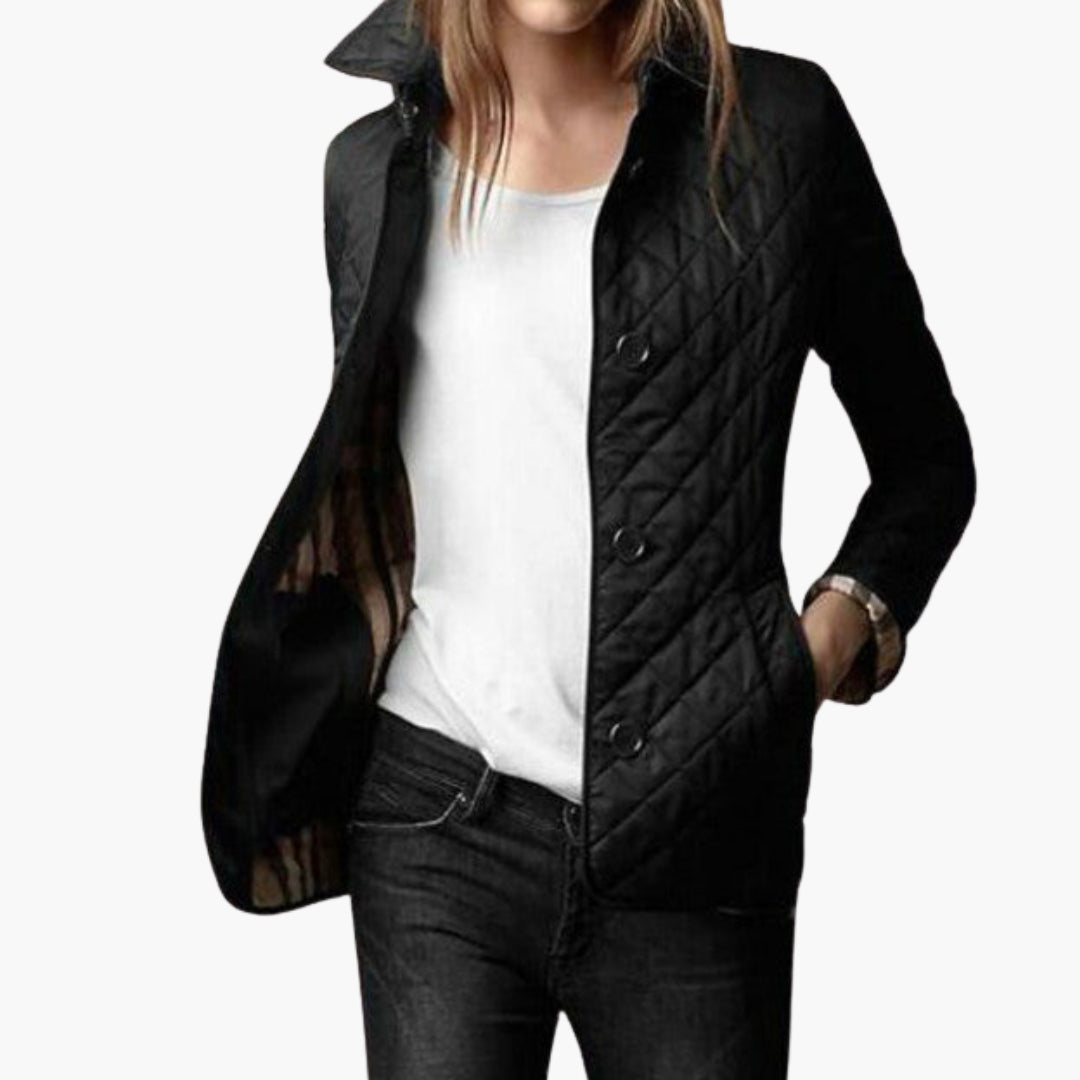 Damejakke med quilt og knapper samt foldbare manchetter