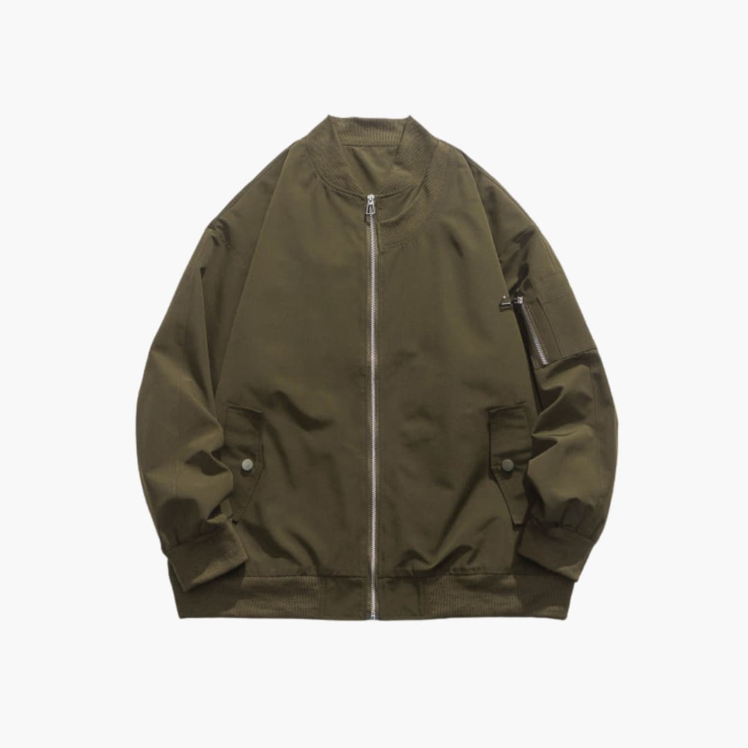 Herre bomberjakke med lynlås og sidelommer