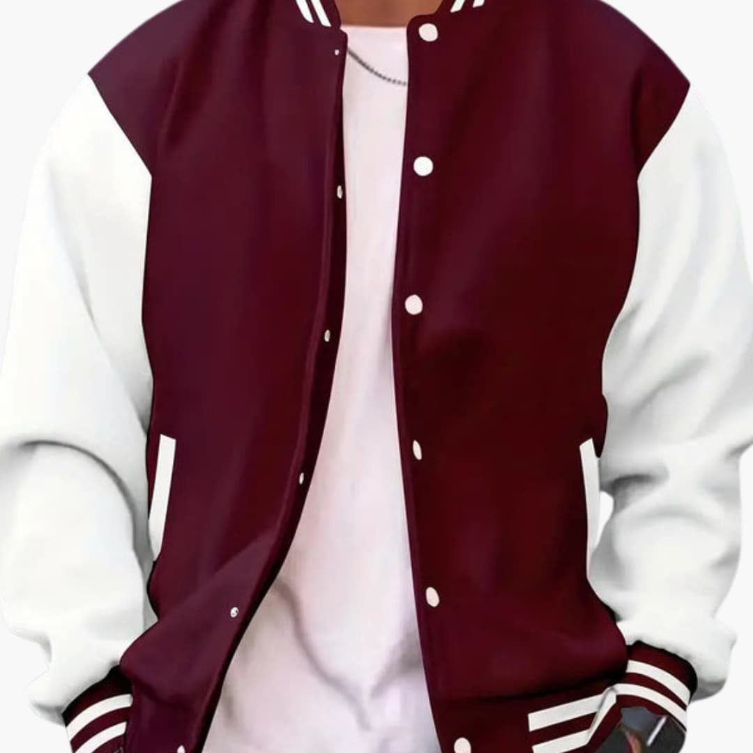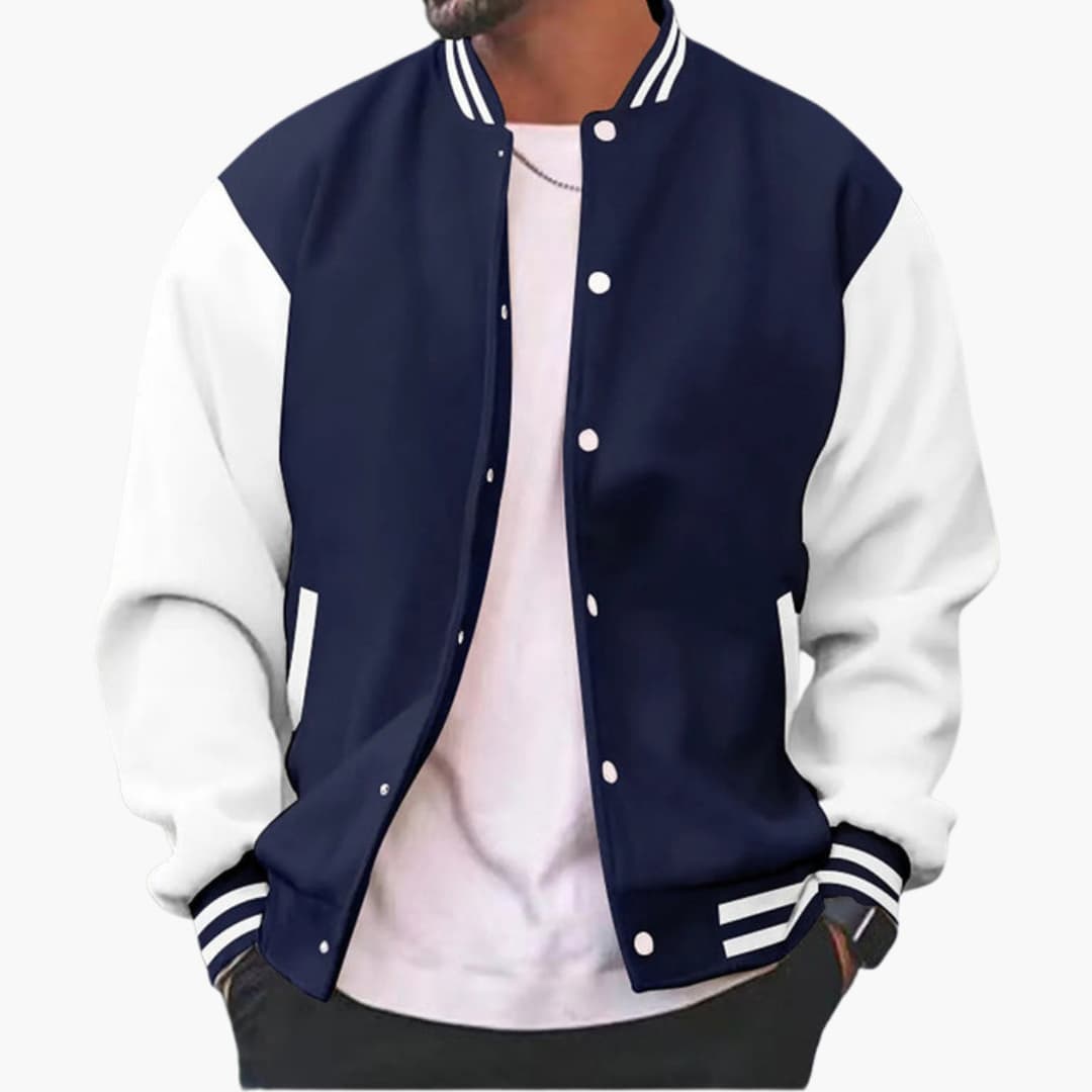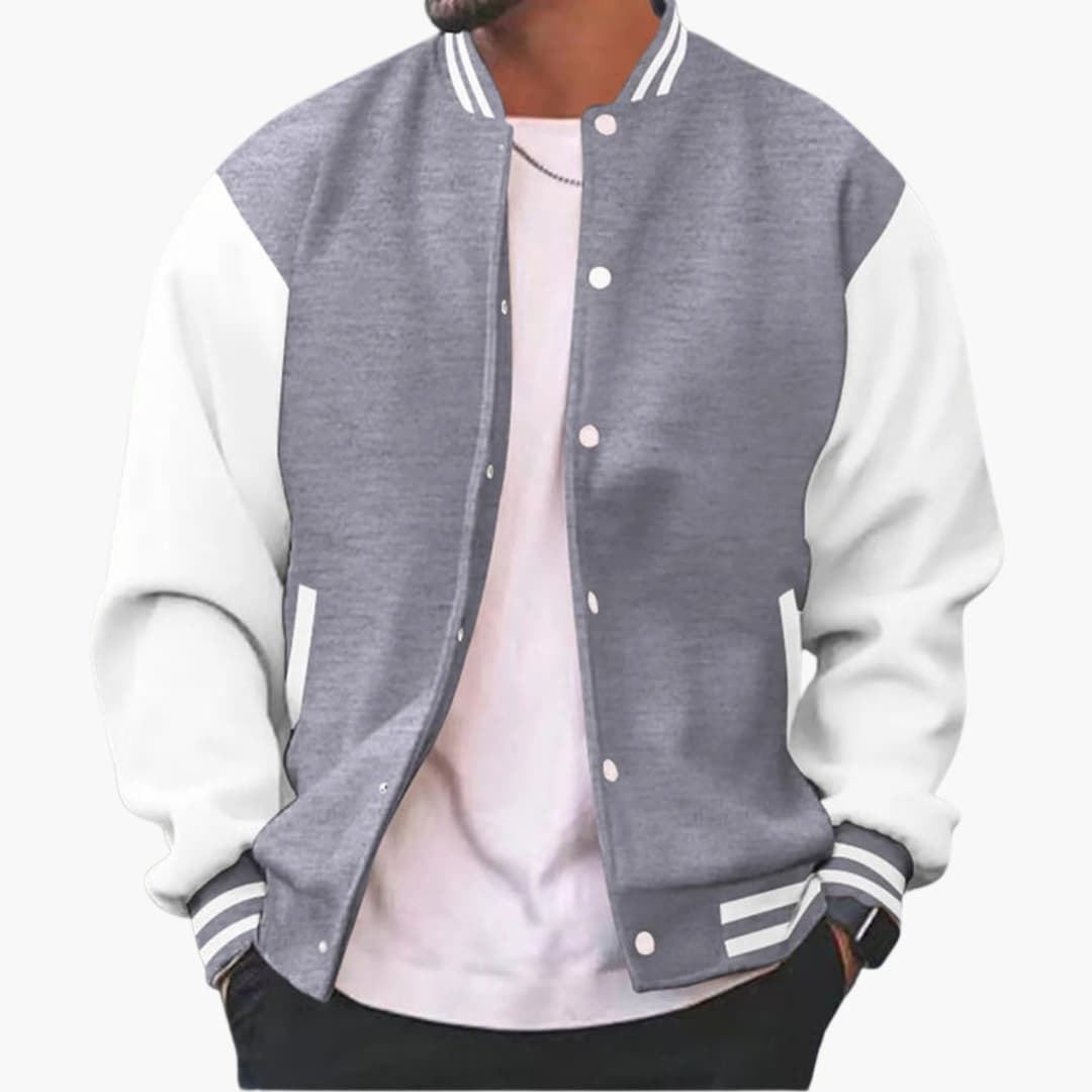 Herre bomberjakke med trykknaplukning og ribkant