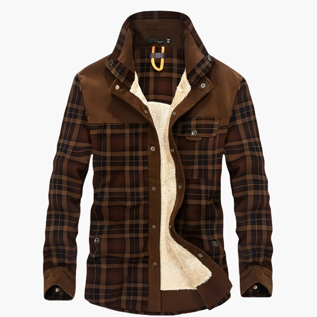 Herre Flannel Jakke Outdoor med Fleece Foring og Knapper