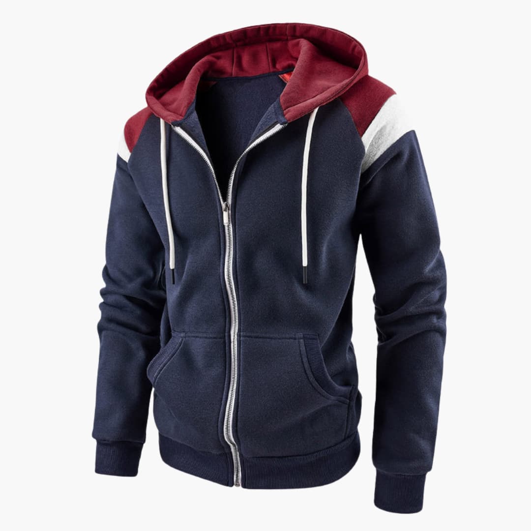 Herre hoodie med lynlås, frontlommer og lange ærmer
