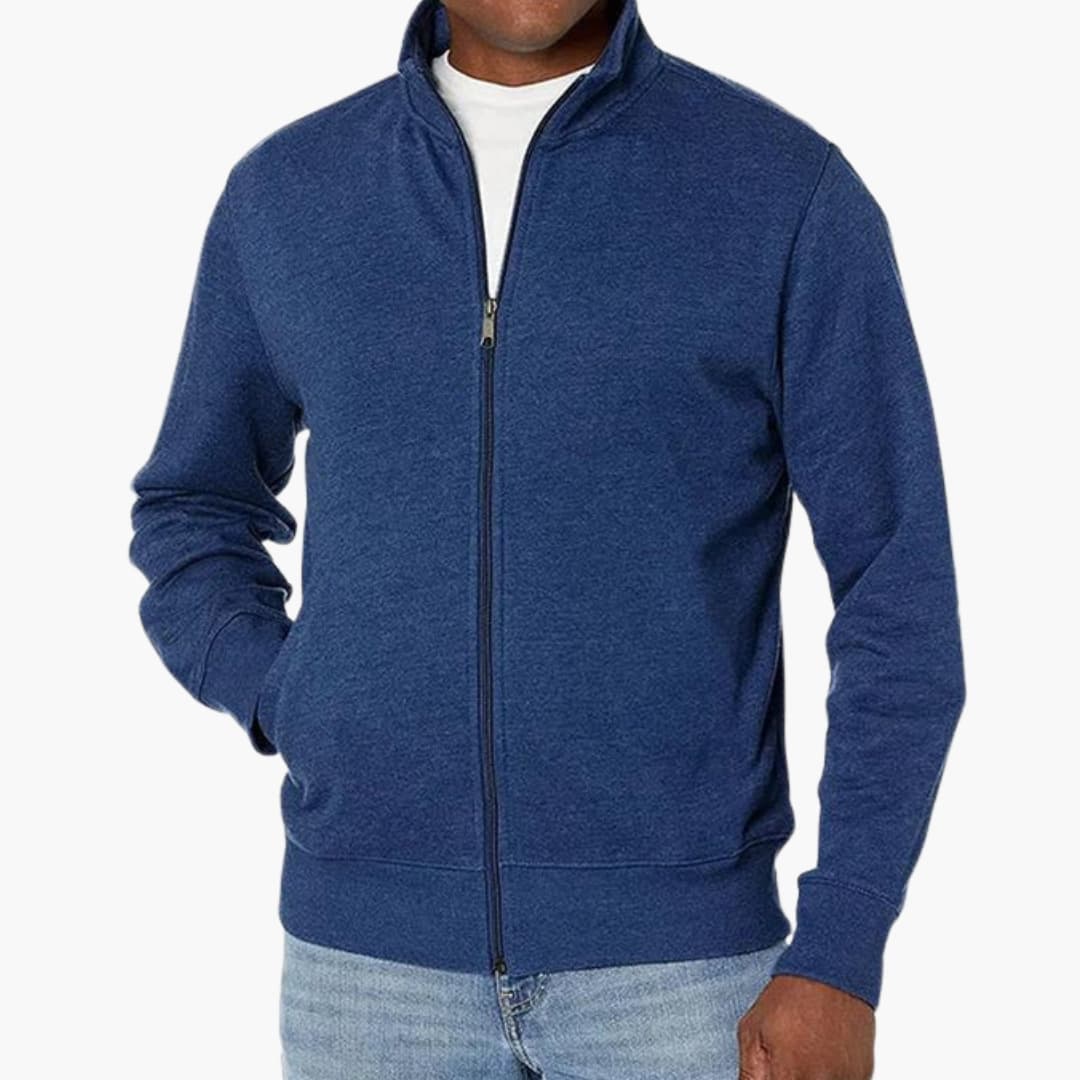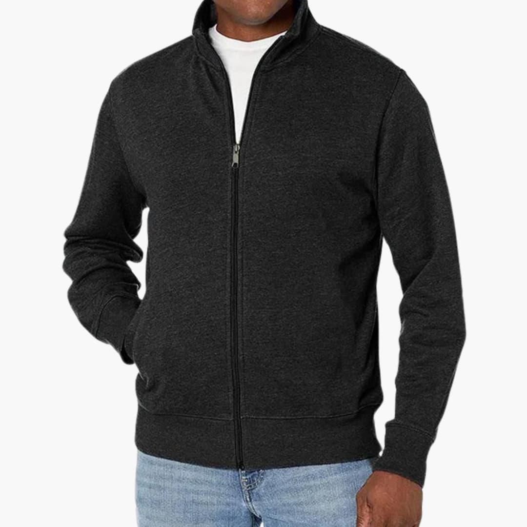 Herre jakke med lynlås i blandet stof med lange ærmer