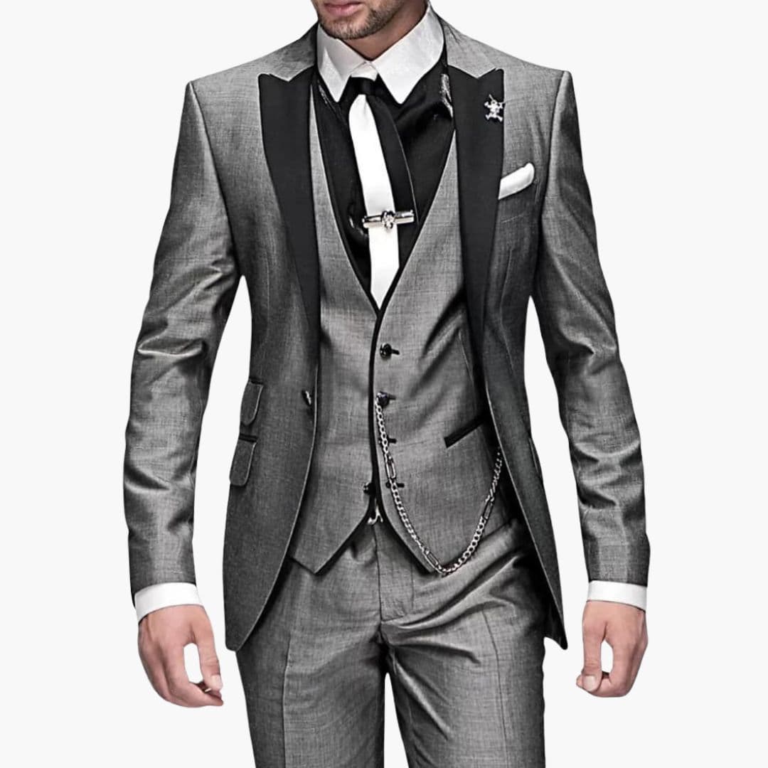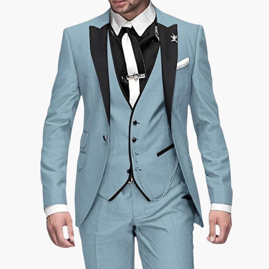 - Tre-delt sæt: Jakke, vest og matchende bukser.