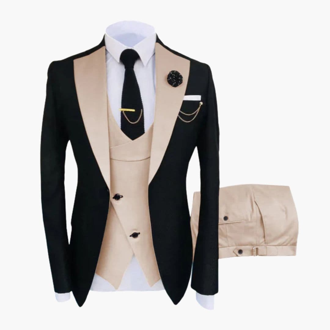 Herre Tre-delt Kostume med Kontrastkrave
