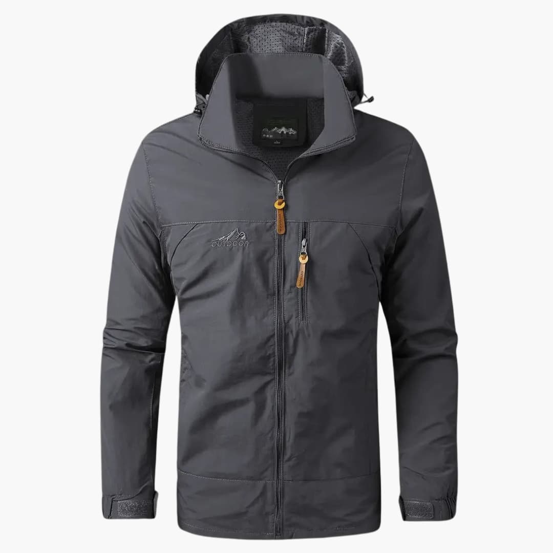 Herrejakke med hætte og praktisk lynlås, velegnet til overgangssæsonen.