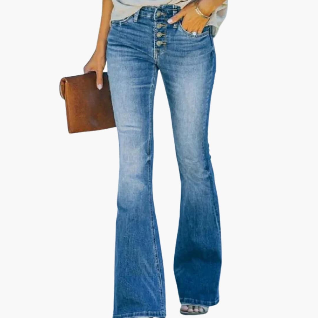 Jean dame med høj talje og knaplukning