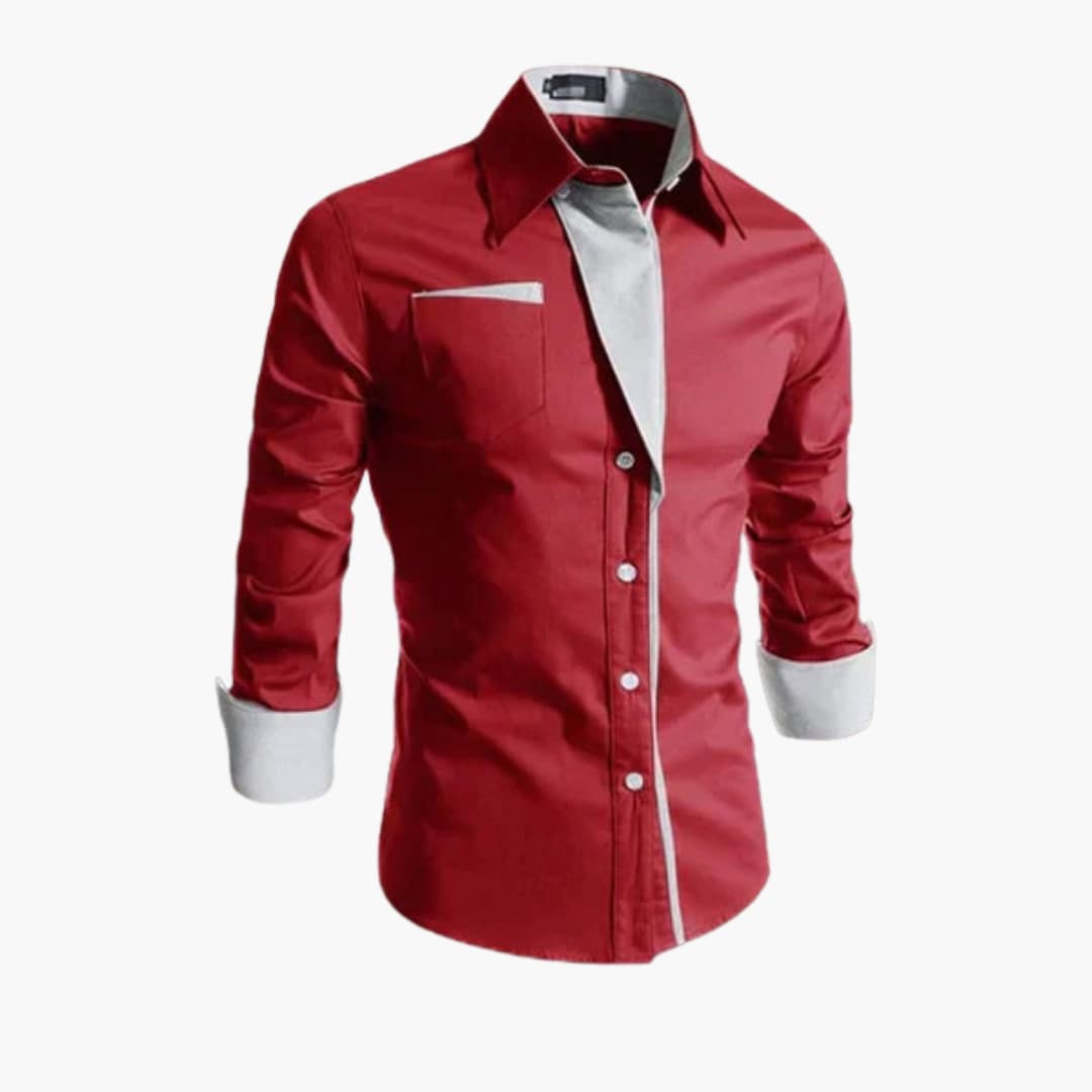 Klassisk herreskjorte med knapper og kontrastfarvet krave og manchetter