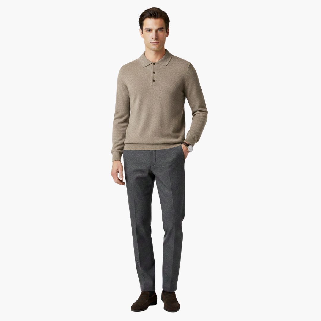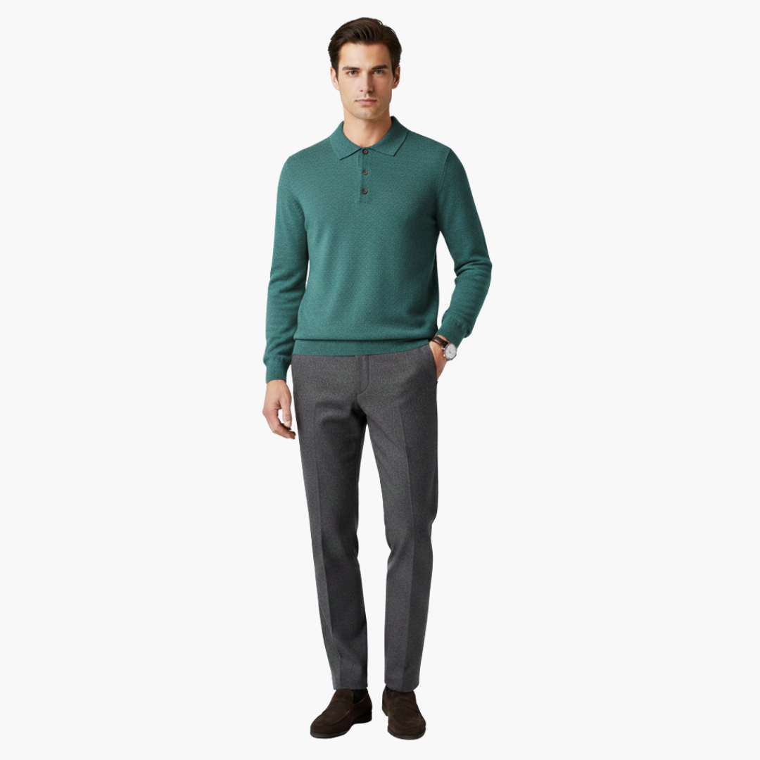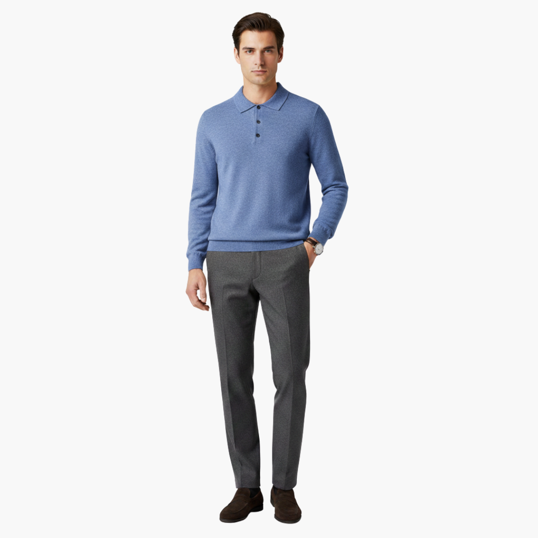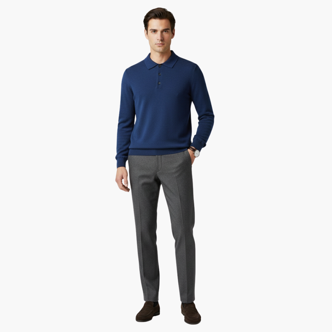 Polo sweatshirt herre langærmet med klassisk krave og knappestolpe.