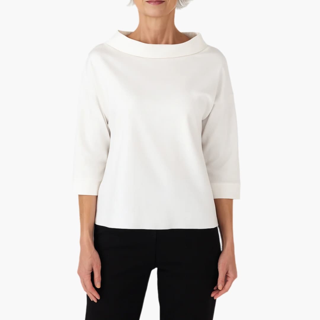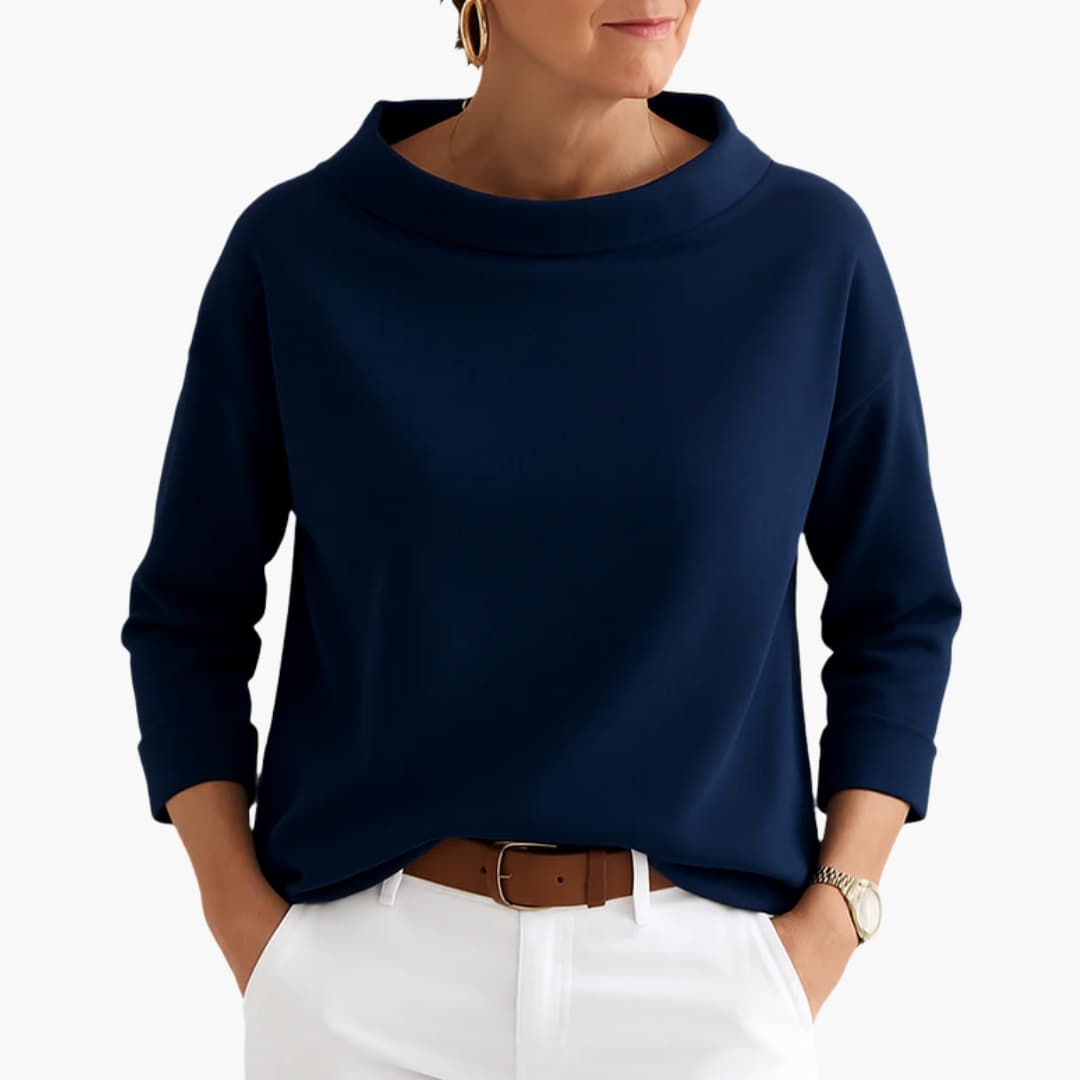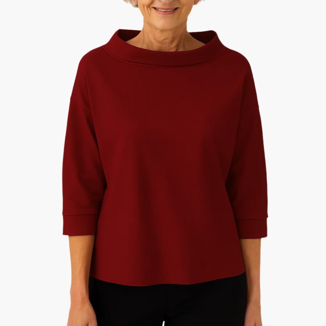 Top Dame Med Høj Krave og 3/4 Ærmer samt Løs Pasform